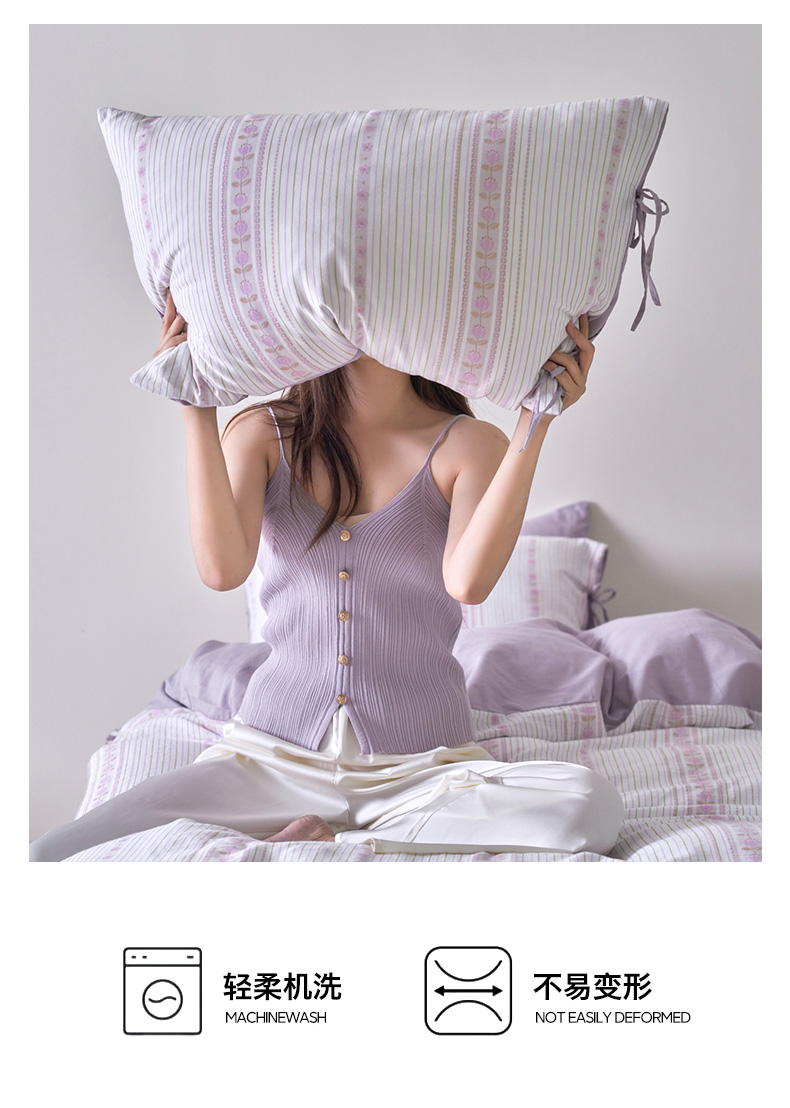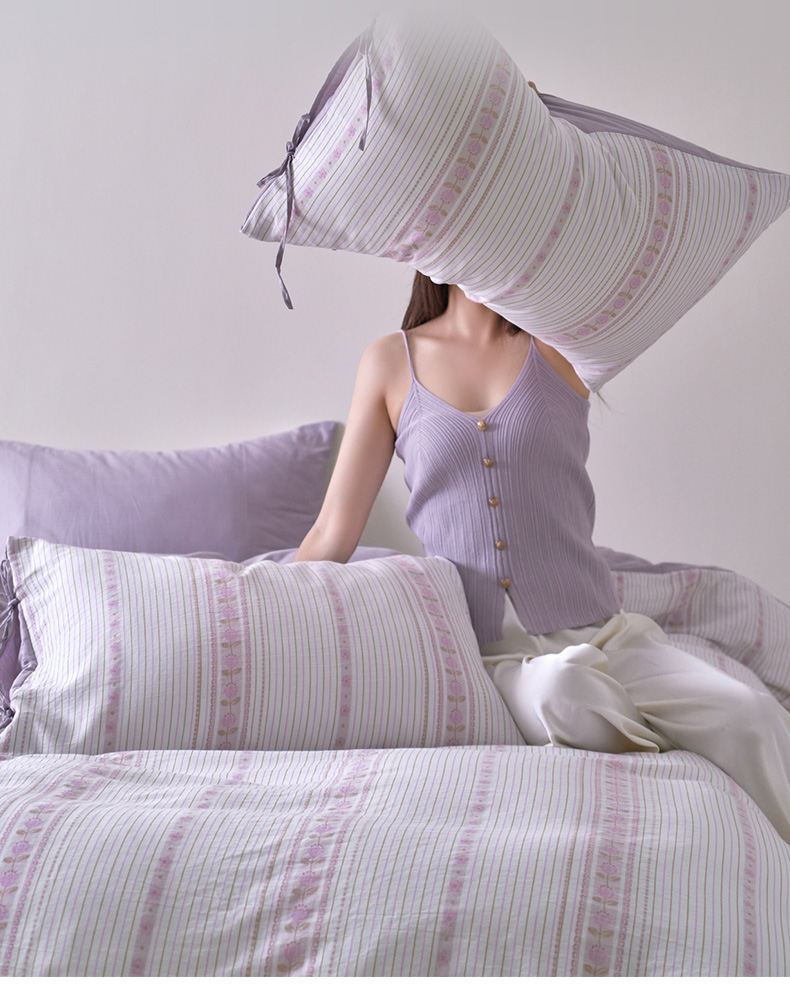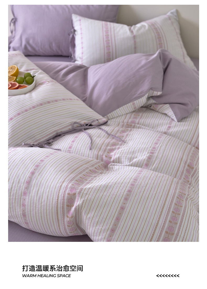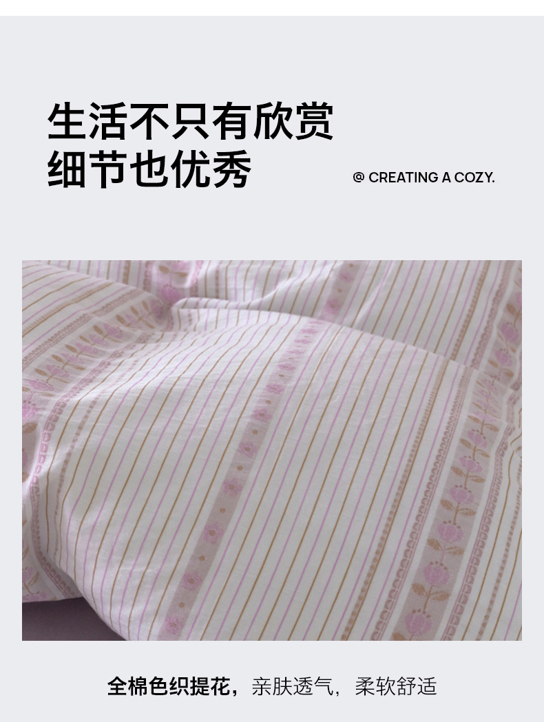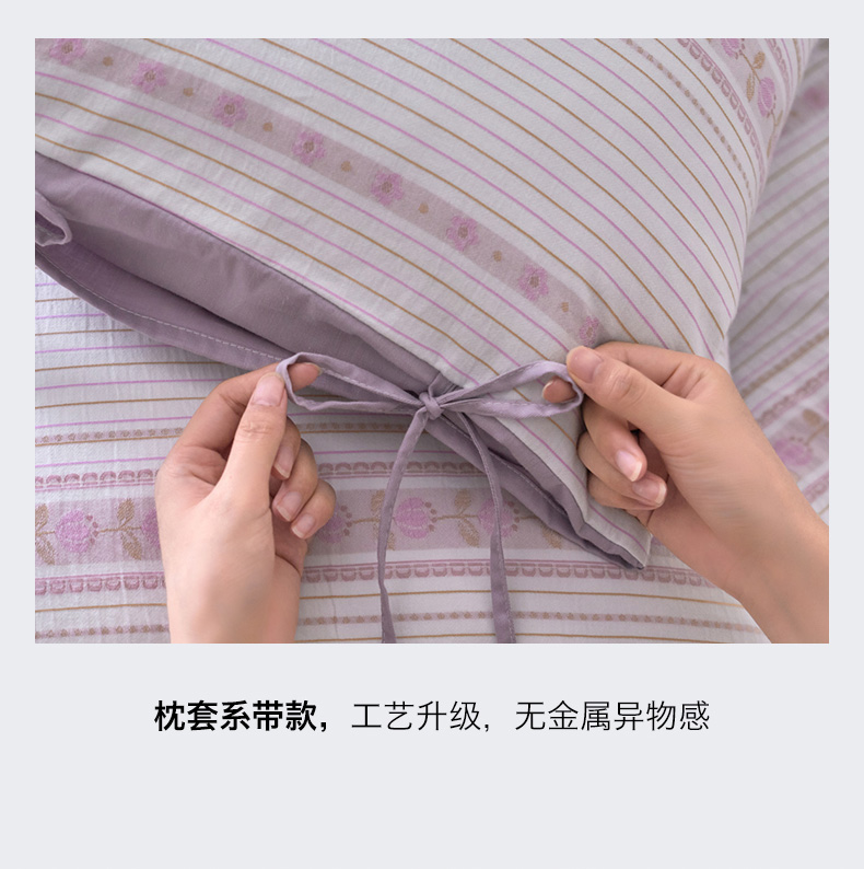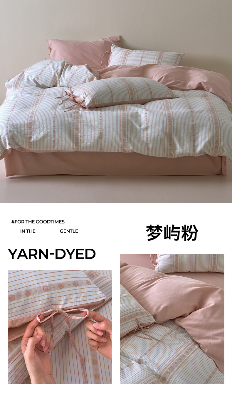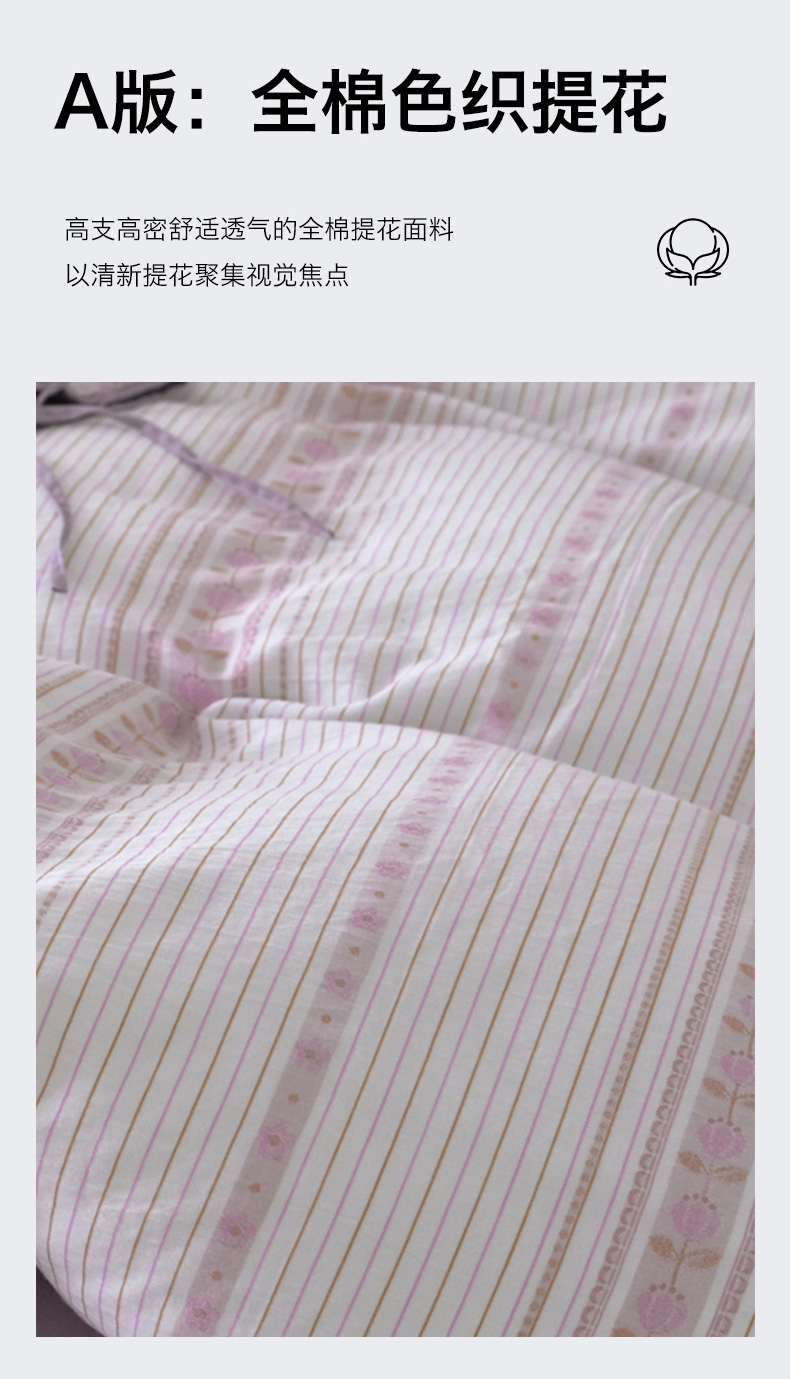 (总)久典家居 2025新款A类全棉色织提花系带款四件套-梦屿系列三色(买家秀加客服),梦屿紫,梦屿粉,梦屿米黄