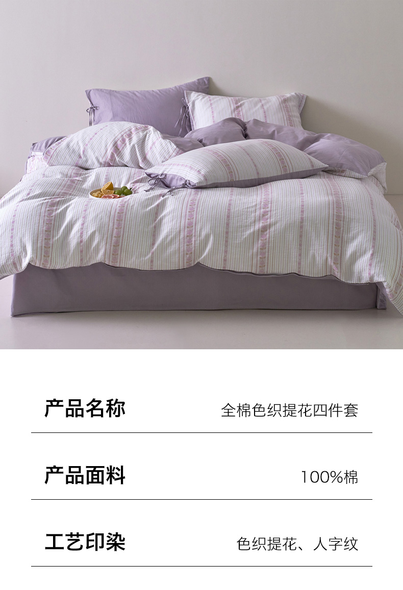 久典家居 2025新款A类全棉色织提花系带款四件套-梦屿系列三色(买家秀加客服) 梦屿紫