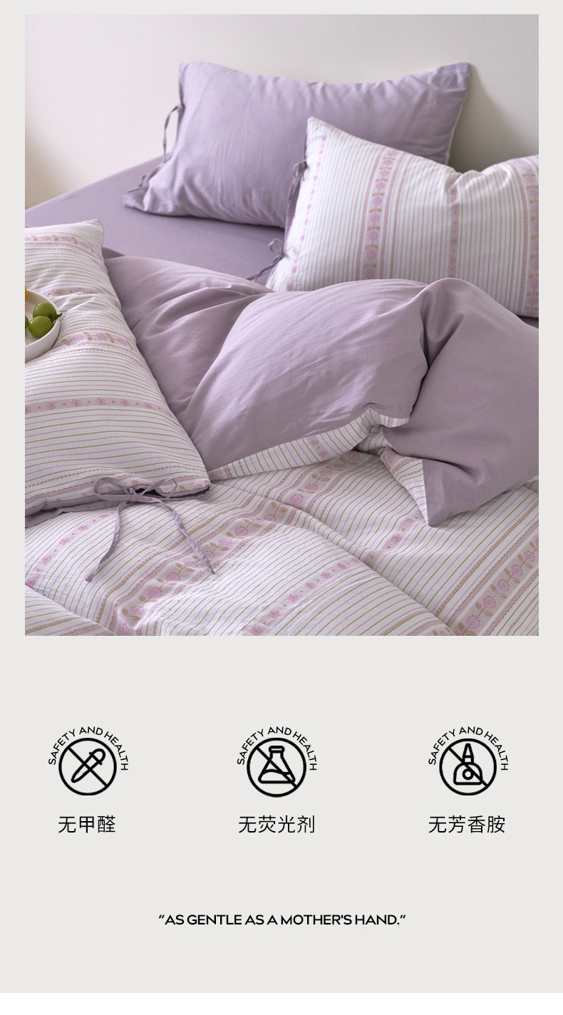 商品名称:久典家居 2025新款A类全棉色织提花系带款四件套-梦屿系列三色(买家秀加客服) 梦屿紫