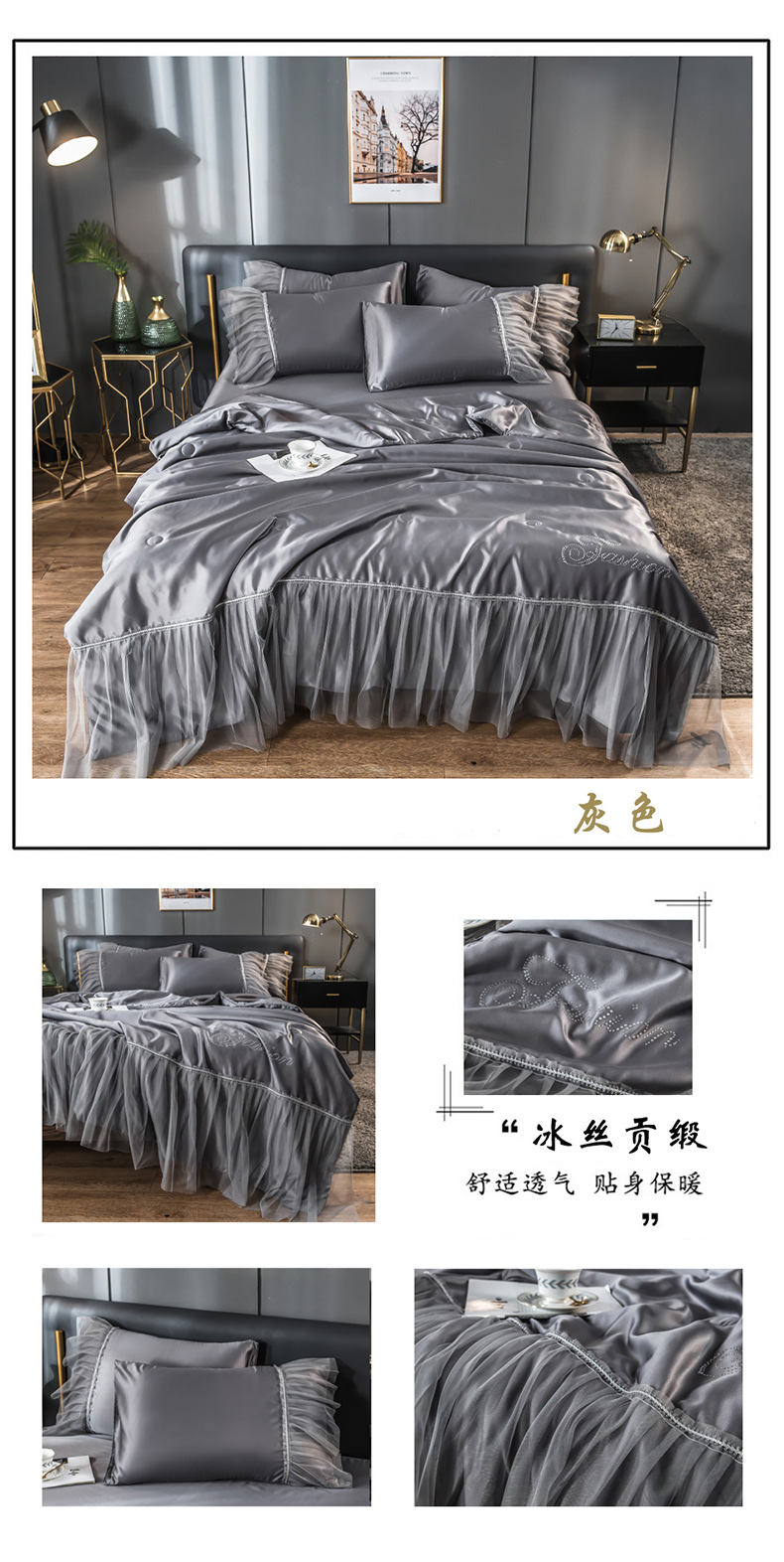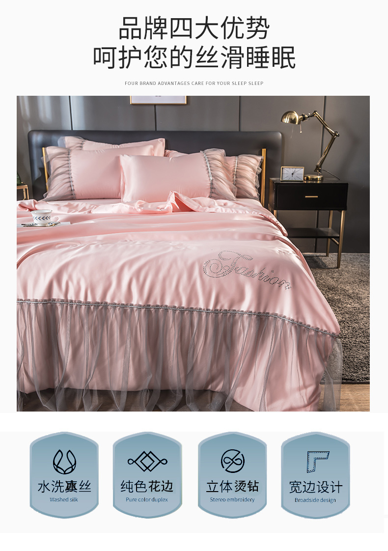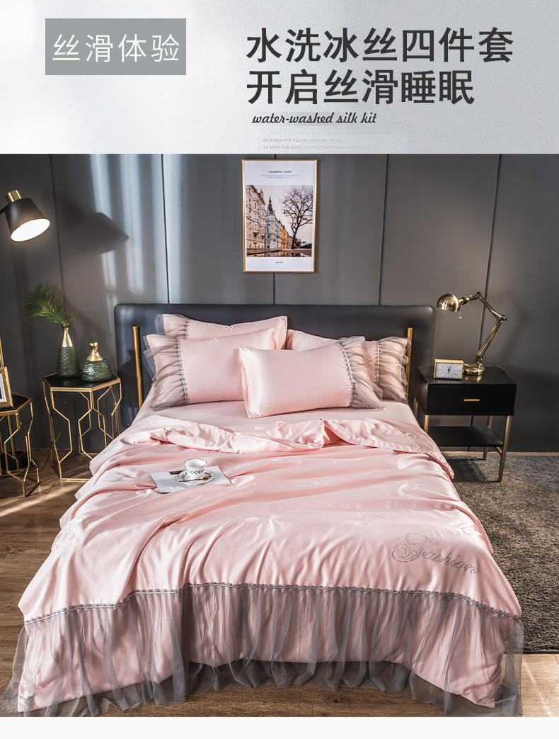 当前位置: 91家纺网 > 商品网购 > 床品套件 > 四件套 > 夏被四件套 > 丽莱美家纺 2026新款水洗冰丝蕾丝夏被 夏被三件套 夏被四件套 玉色