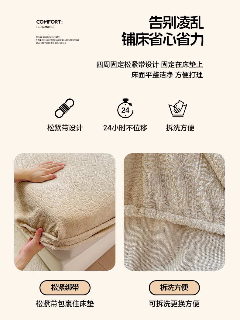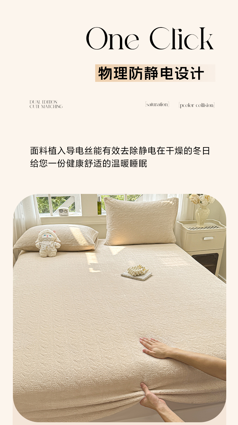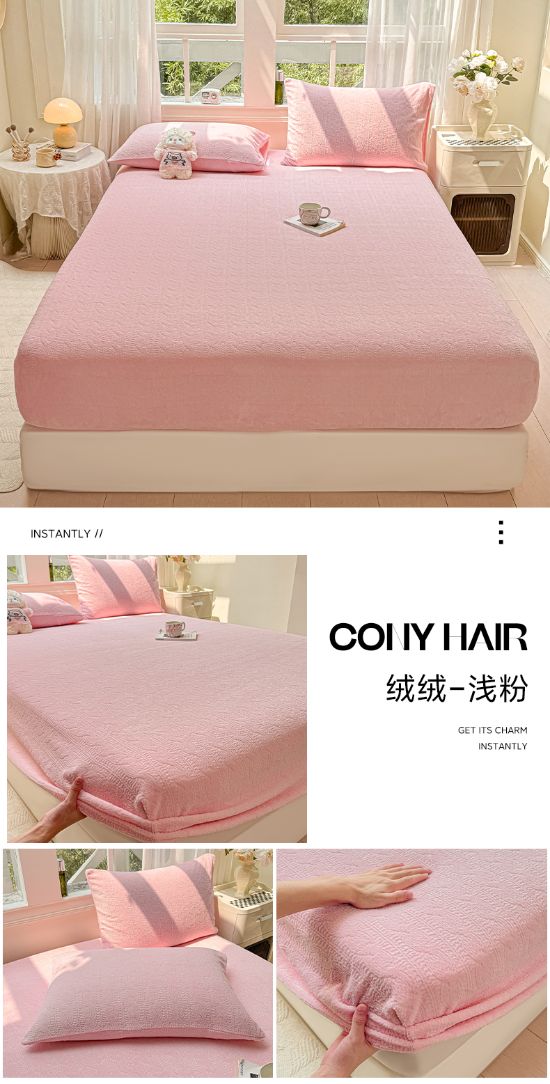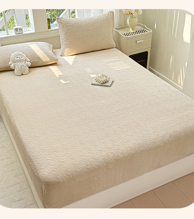 • 91家纺网 家纺一手货源 找家纺 罗亿家纺 2025新款高克重牛奶绒烂花雕花纯色床笠(230g) 组合图