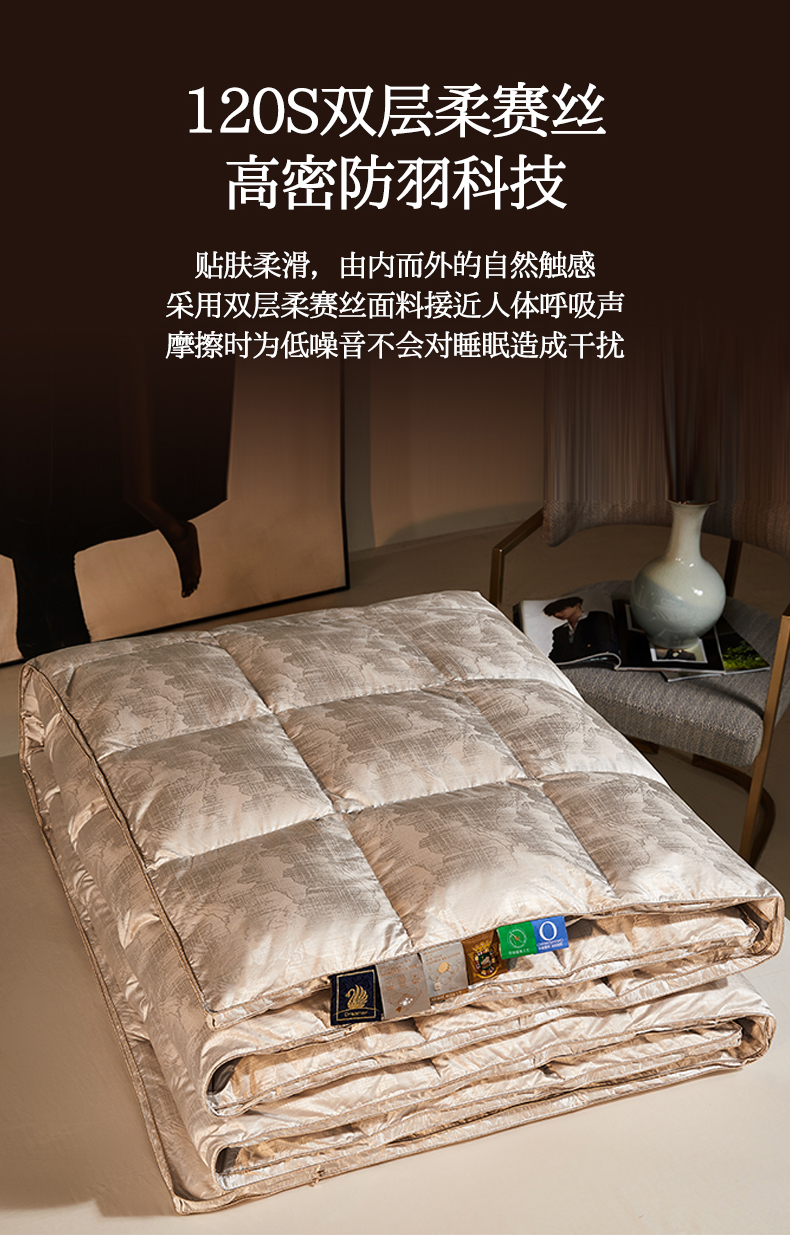 • 91家纺网 家纺一手货源 找家纺 (总)织梦人羽绒工厂店 2025新款高端100支长绒棉德国进口软银丝全棉95鹅绒羽绒被,凤翎-黑金