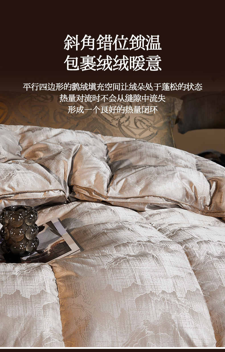 当前位置: 91家纺网 > 商品网购 > 被子 > 羽绒被 > 织梦人羽绒工厂店 2025新款高蓬松羽绒羽毛被大牌同款花型-高精密提花系列 高精密提花-山尧灰