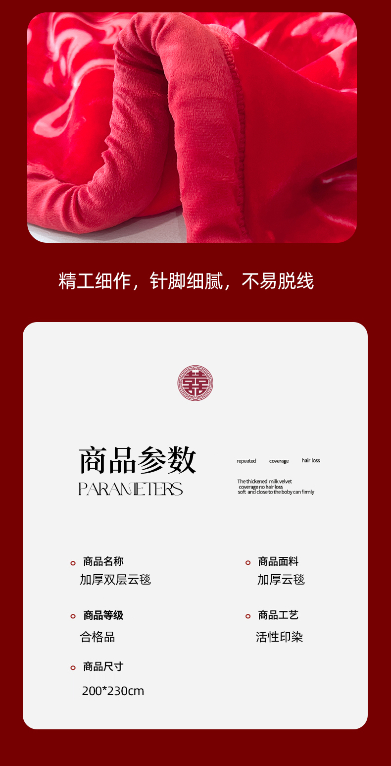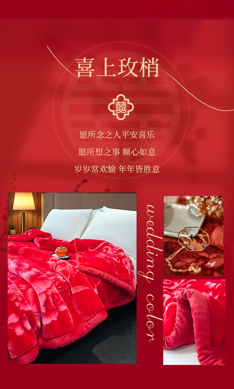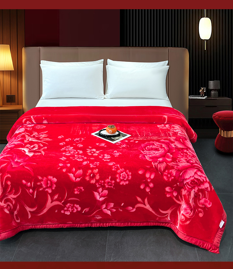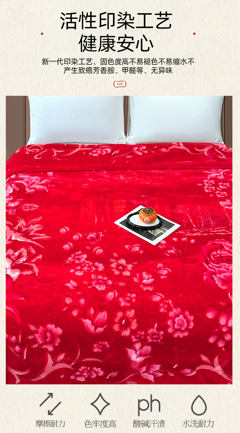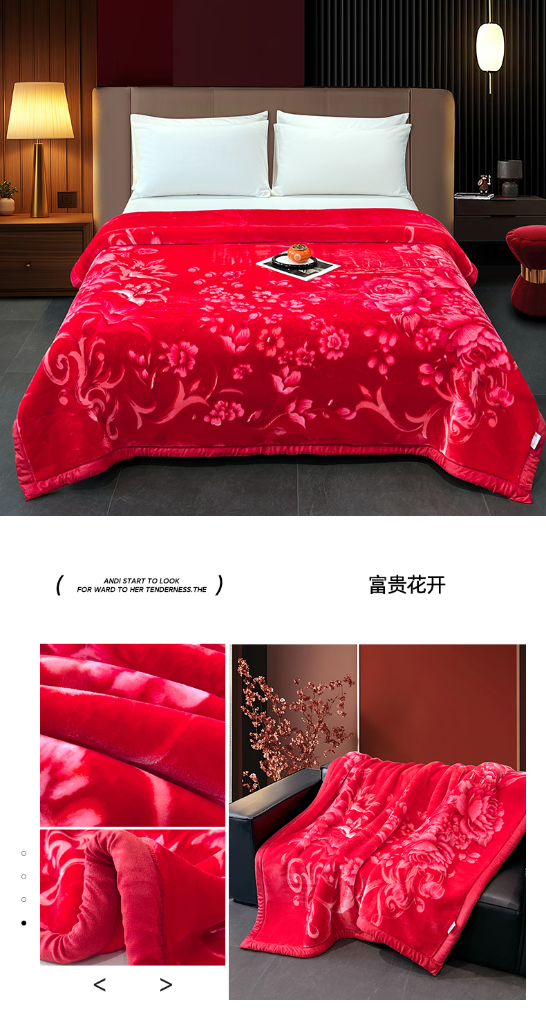 商品名称:凯轩毛毯 2025新款加厚双层婚庆云毯 毛毯 富贵花开