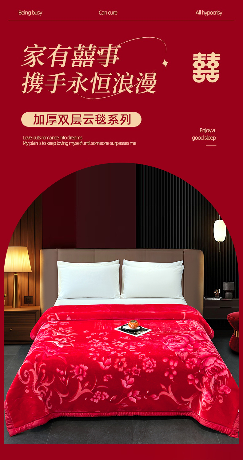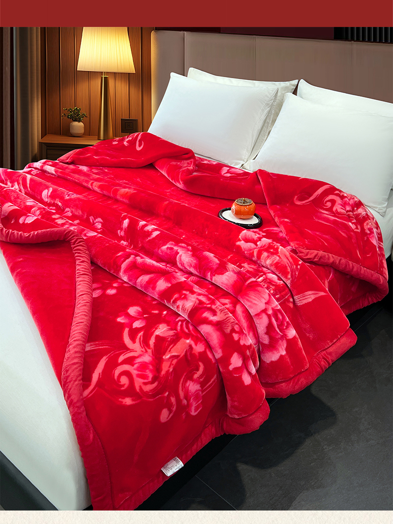 凯轩毛毯 2025新款加厚双层婚庆云毯 毛毯 富贵花开