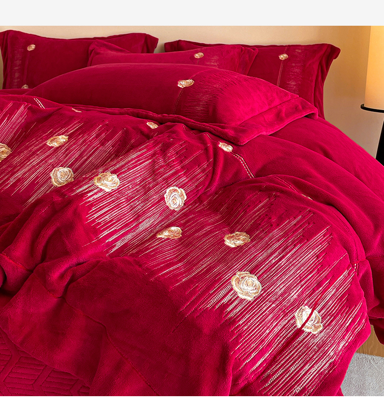 当前位置: 91家纺网 > 商品网购 > 床品套件 > 四件套 > 牛奶绒四件套 > 新方向 2025新款全消光A类刺绣牛奶绒四件套-玫瑰情缘 玫瑰情缘-洋酒红