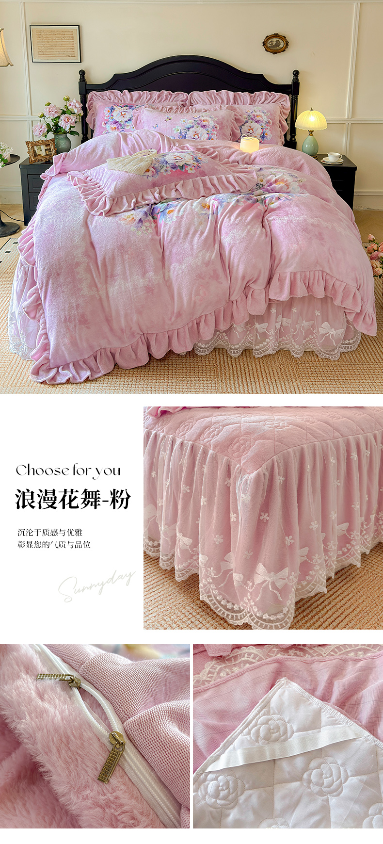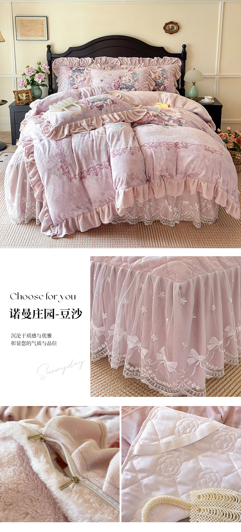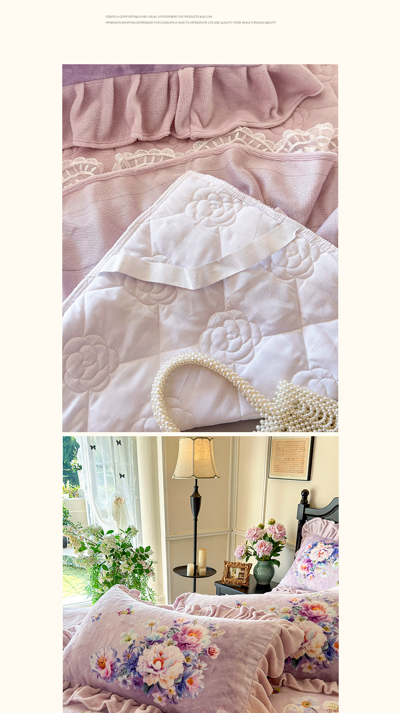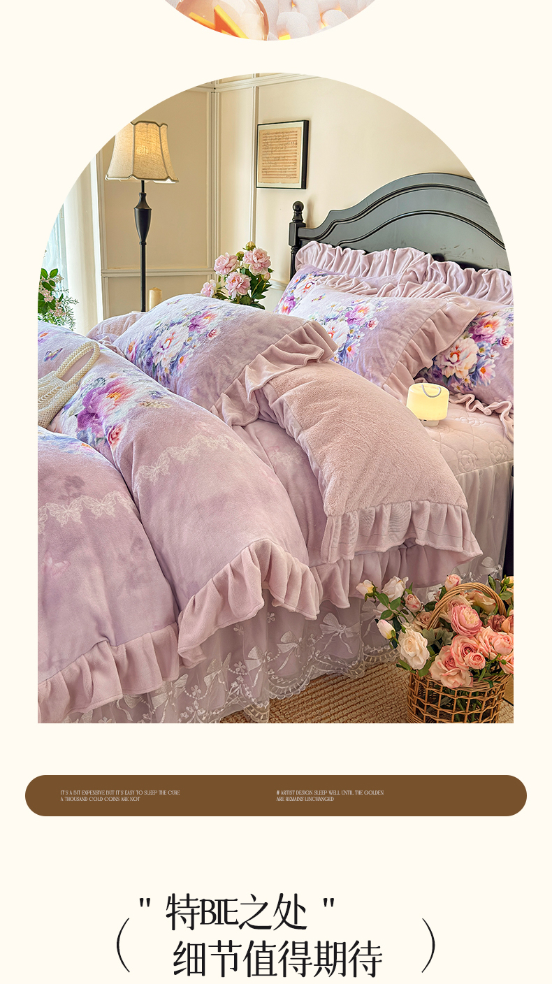 (总)宜凡家纺 2025新款兔绒提花牛奶绒夹棉床裙四件套,爱心 少女粉,爱心 粉紫,爱心 驼色,蝶舞 大红,蝶舞 米色,蝶舞 浅紫,蝶舞 玉色,简爱 苍青,简爱 豆沙紫,简爱 玉色,樱桃 苍青,樱桃 豆沙紫,樱桃 奶油白