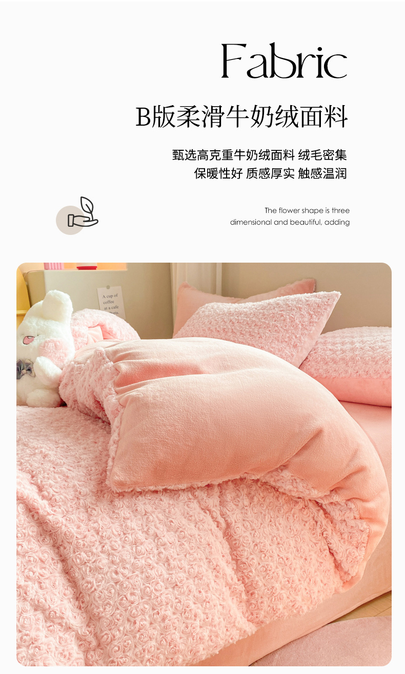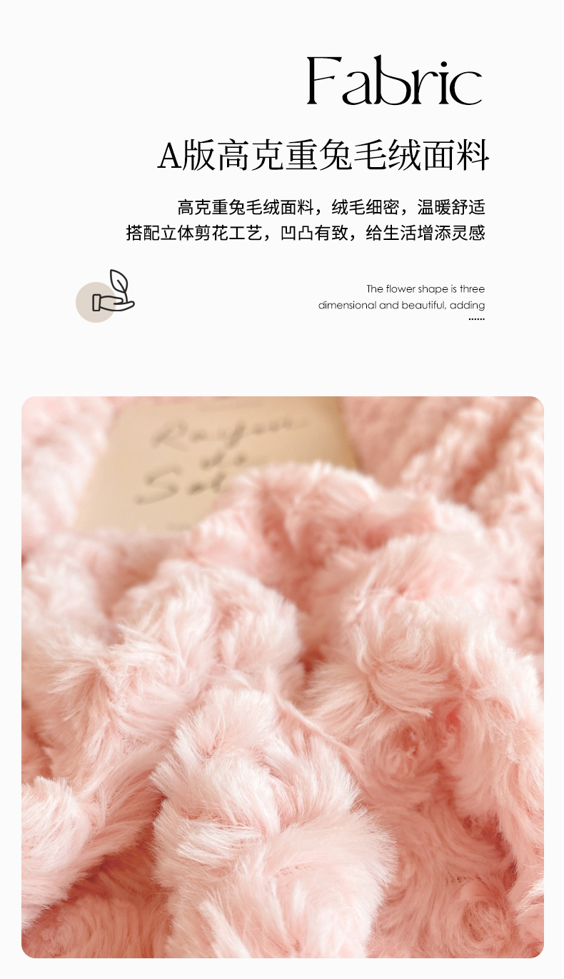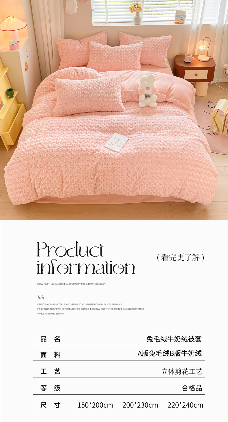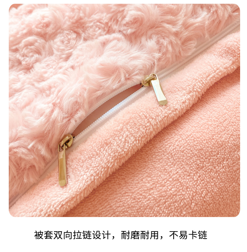 • 91家纺网 家纺一手货源 找家纺 名兮家居 2025冬季新款加厚仿兔绒单被套 玫瑰-粉