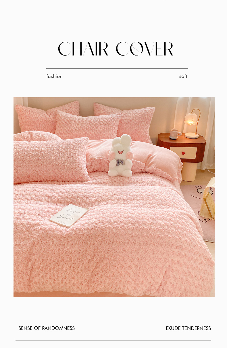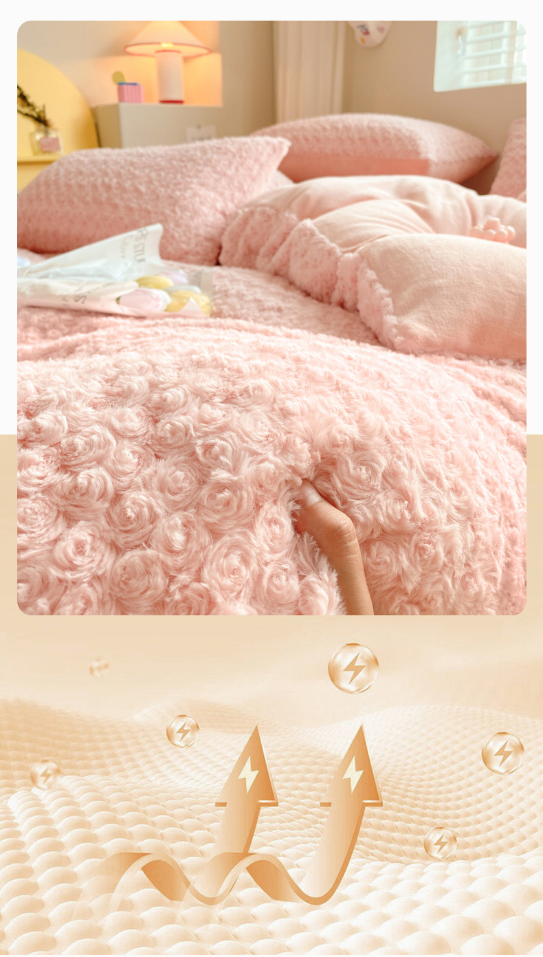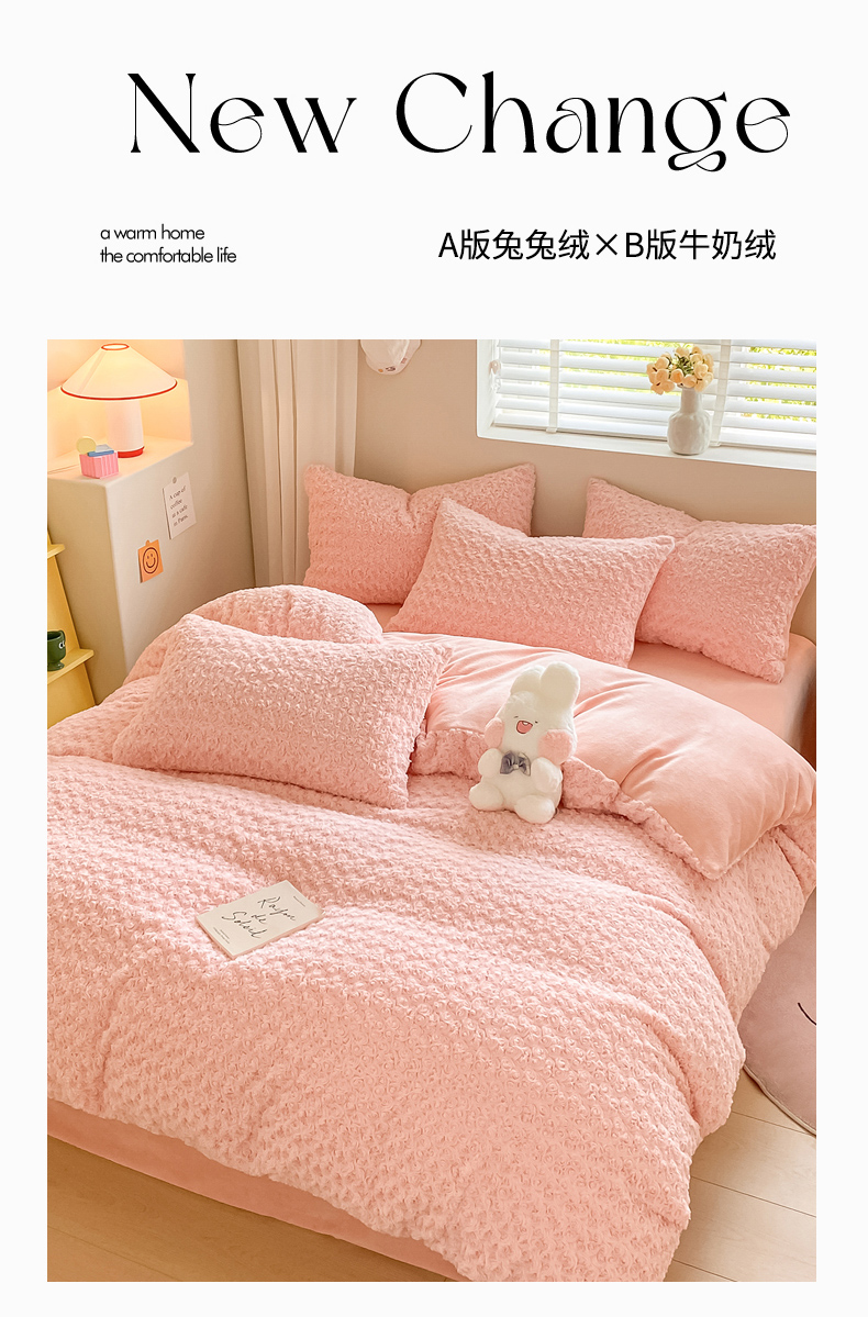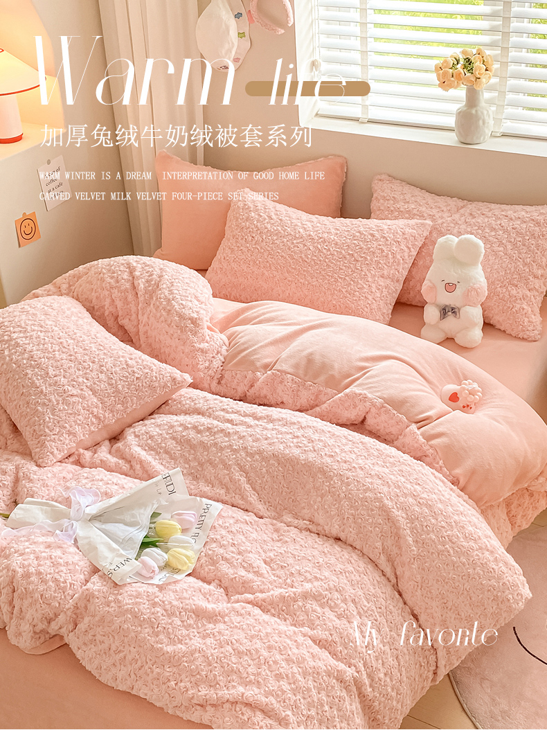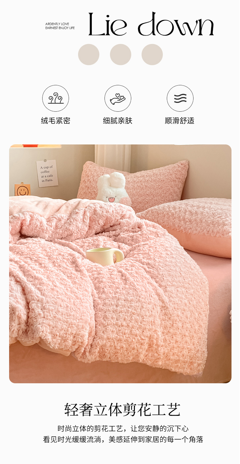 • 91家纺网 家纺一手货源 找家纺 名兮家居 2025冬季新款加厚仿兔绒单被套 玫瑰-粉