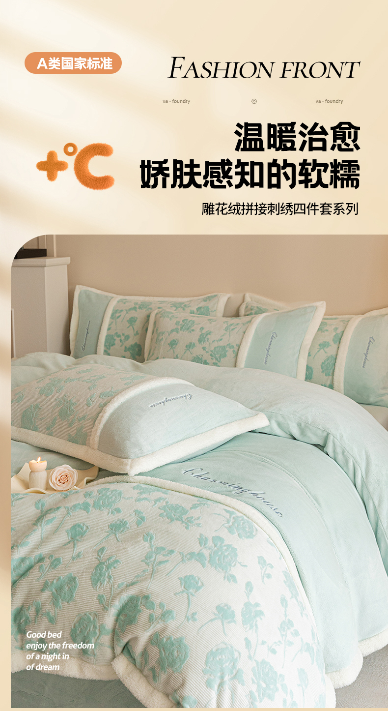 (总)遇见家居生活馆 2025新款高克重雕花绒拼接刺绣四件套系列-艾菲妮,蝴蝶-靓粉(浅),蝴蝶-靓粉(深),蝴蝶-清澈蓝,蝴蝶-天空蓝,蝴蝶-香槟色,玫瑰-靓粉(浅),玫瑰-靓粉(深),玫瑰-清澈蓝,玫瑰-香草灰,玫瑰-月白绿