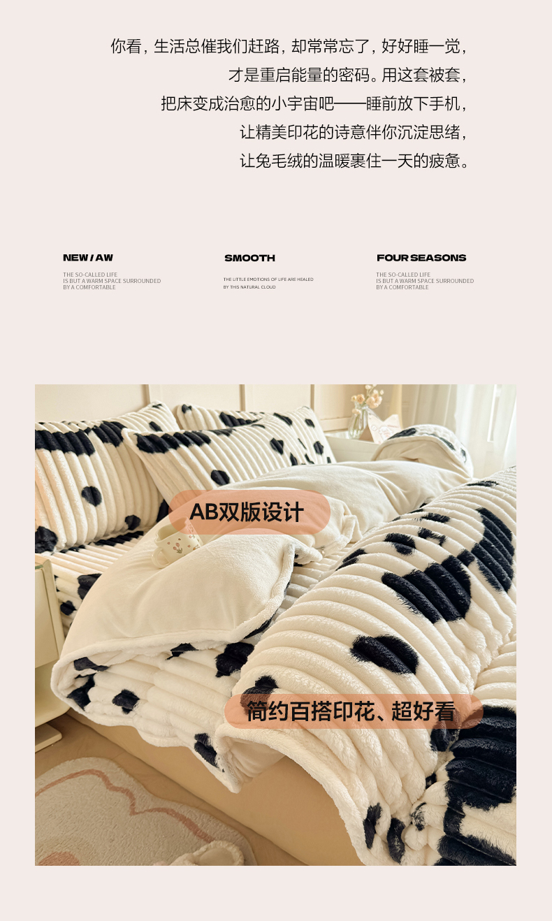 商品名称:眠势力 2025新款兔兔绒抽条印花被套兔毛绒加厚保暖被罩 豹纹KT