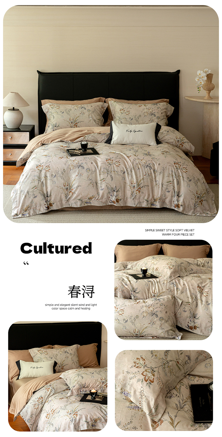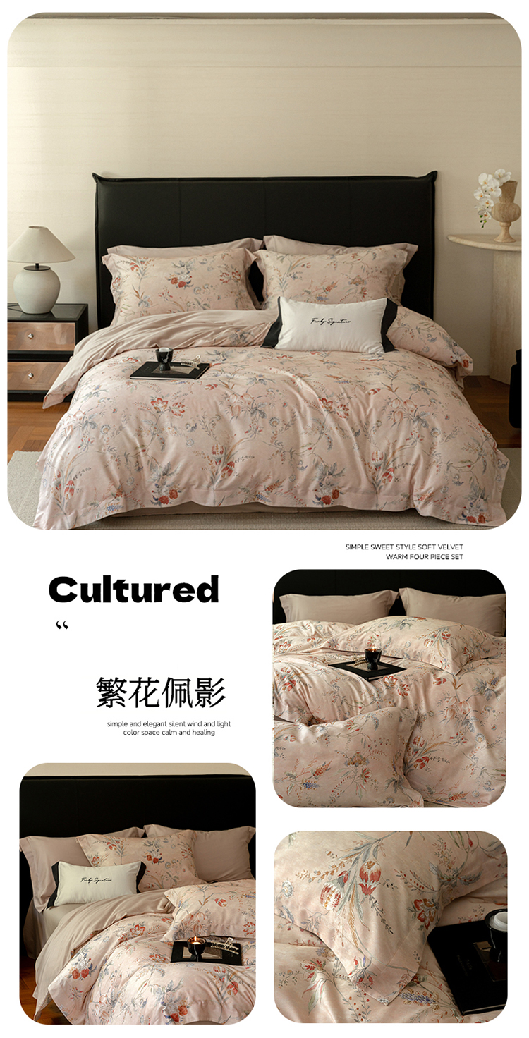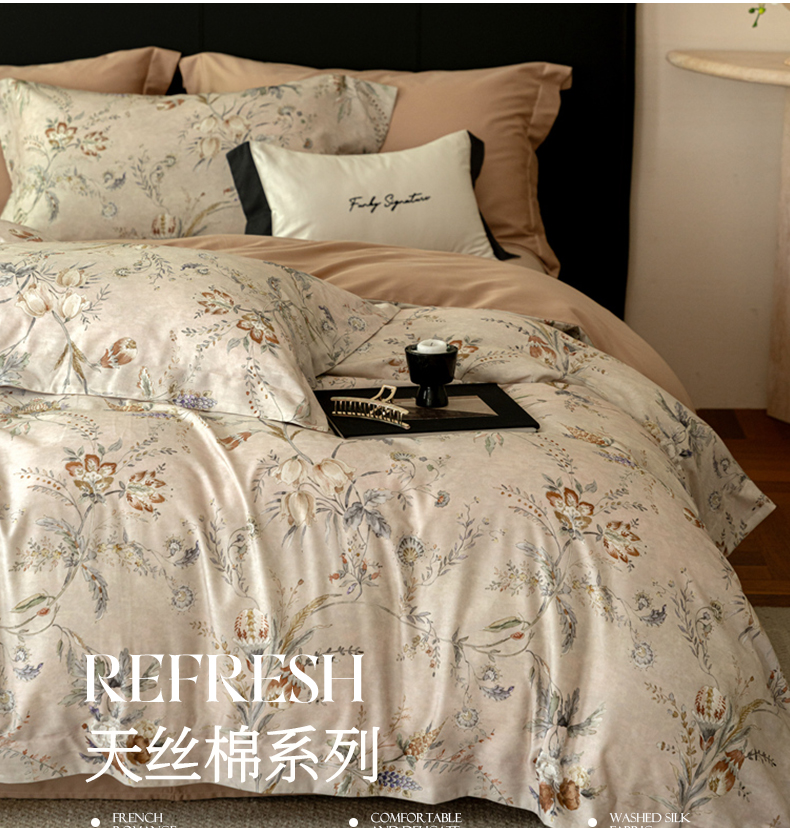 (总)黛舒家居 2025新款天丝棉磨毛花卉四件套