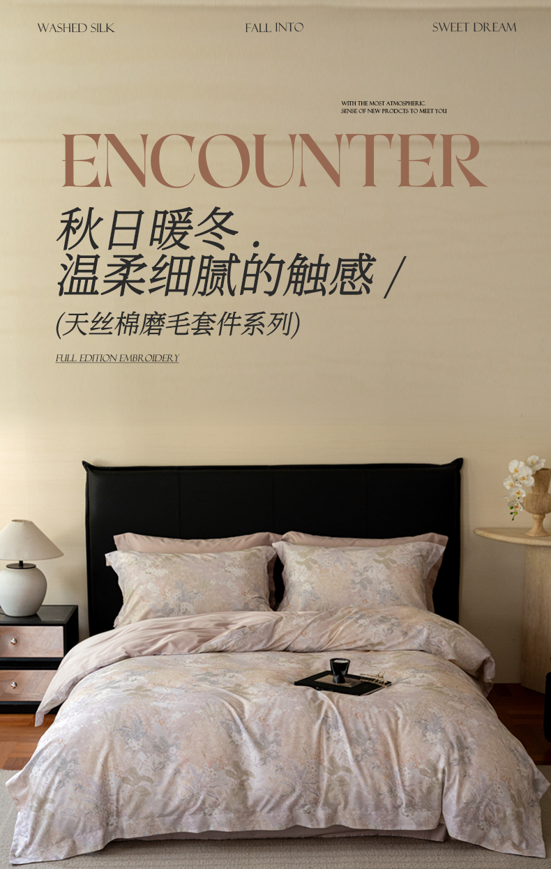 黛舒家居 2025新款天丝棉磨毛花卉四件套 绮梦花间