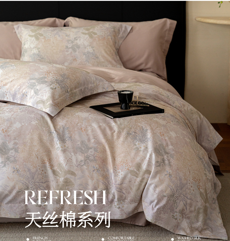 (总)黛舒家居 2025新款天丝棉磨毛花卉四件套,春浔,繁花佩影,罗曼蒂克,花攒绮簇,富郁花开,花枝浅梦,蝶恋花,椿莳,璞野花庭,绮梦花间,梧叶花筑,雾隐白茶