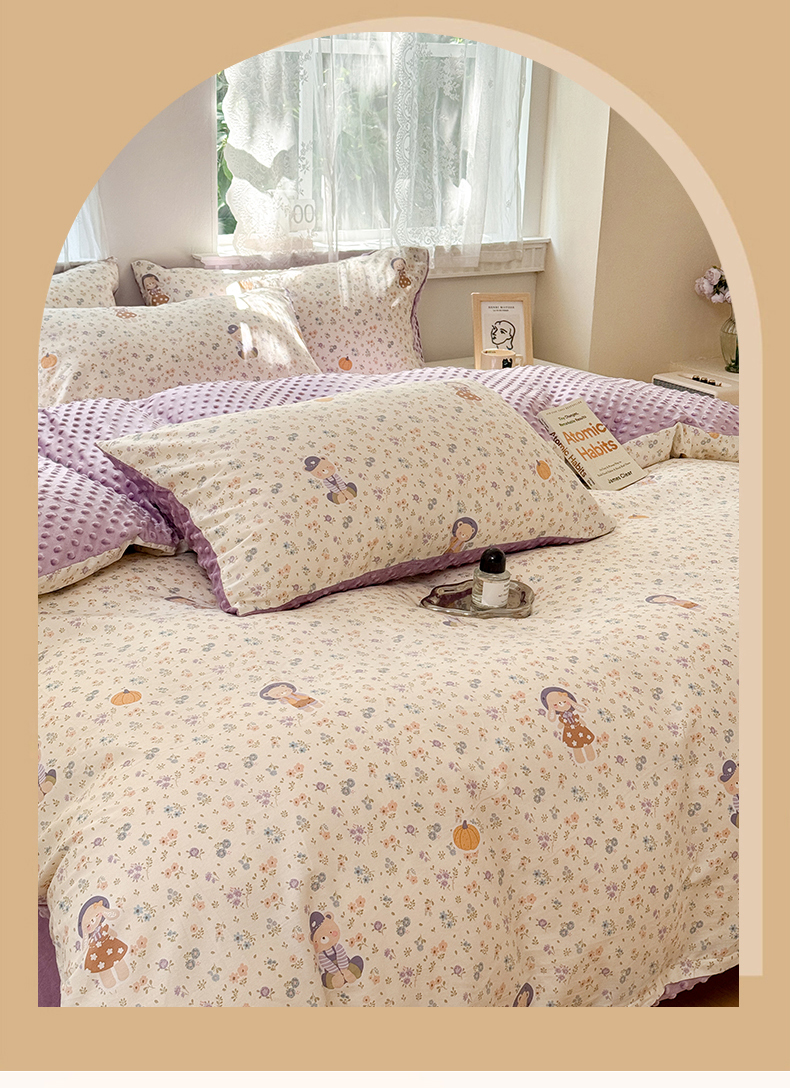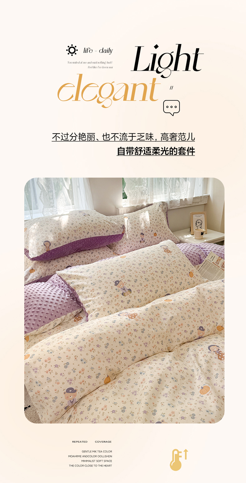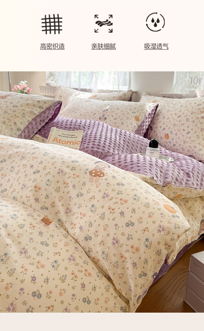 • 91家纺网 家纺一手货源 找家纺 雯雨家纺 2025新款ab版全棉豆豆绒婴儿绒牛奶绒单被套被罩单件 碎花兔熊