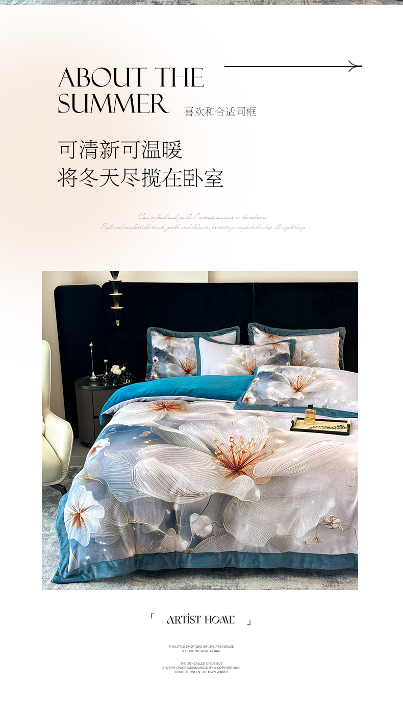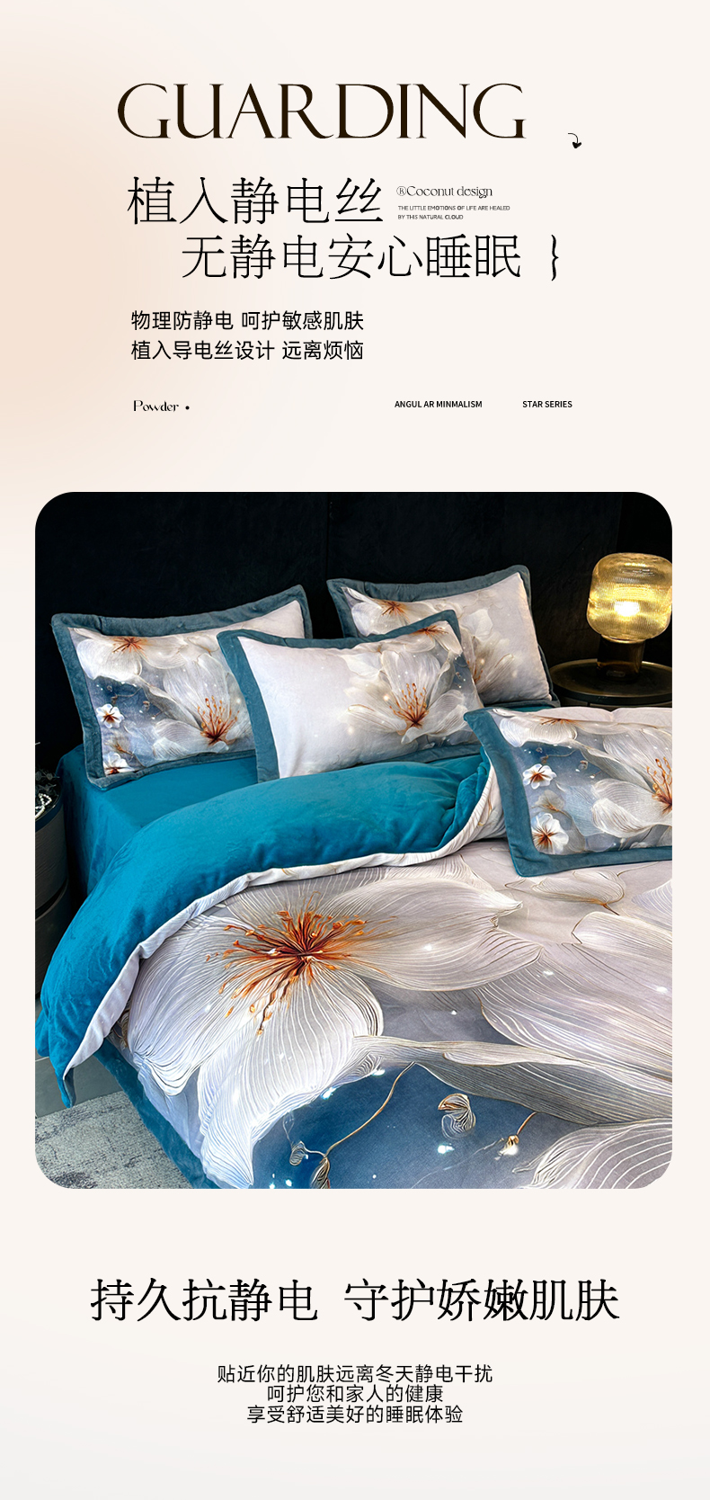 (总)诺梵家纺 2025新款牛奶绒绣花绒四件套,芳华-宝蓝,芳华-豆沙,芳华-湖兰,芳华-米白,芳华-抹茶绿,伊莉莎-米白,伊莉莎-抹茶绿