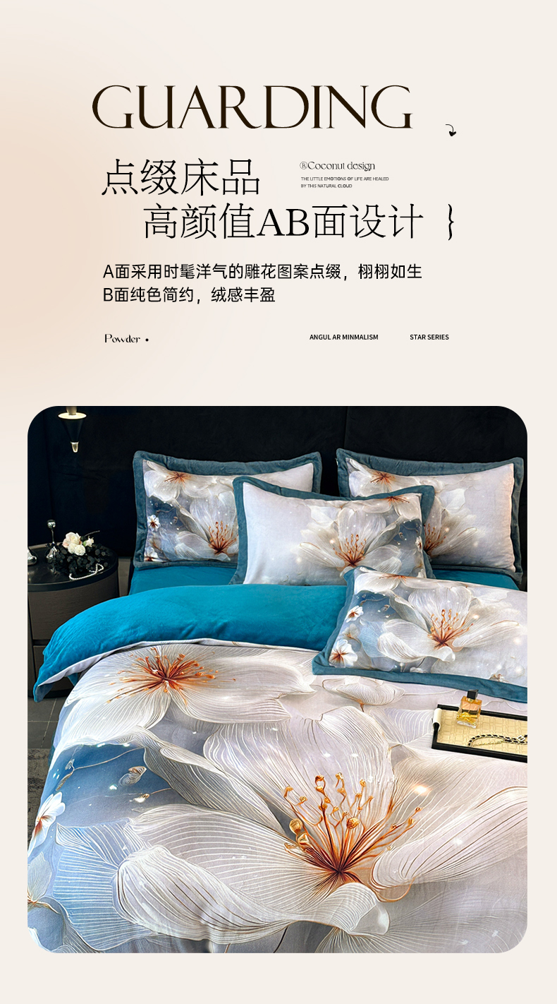 (总)诺梵 2025新款8斤立体雕花牛奶绒四件套_控价标准高于139,加大高于149,花漾-蓝,花漾-绿,温莎-浅粉,温莎-灰,千鸟格-粉,玫瑰之约-黄,梦娜-粉,梦娜-蓝,绒雪花-粉,知意粉,玫瑰之约-粉,兰亭-绿,蒂娜-粉,蒂娜-黄,含香待放-粉,含香待放-灰,花朝梦-粉,洛丽塔-粉,无尽夏-豆沙,无尽夏-蓝,绣球花束-灰,绣球花束-绿,银杏叶,绒雪花-灰