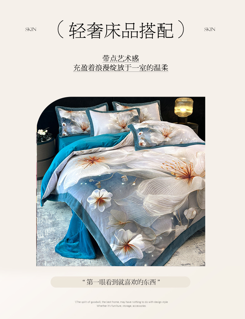 (总)诺梵家纺 2025新款兔毛绒包边 雕花绒四件套,梵花-米白,梵花-紫金,花魅-咖,青黛,苏乡,栖春山