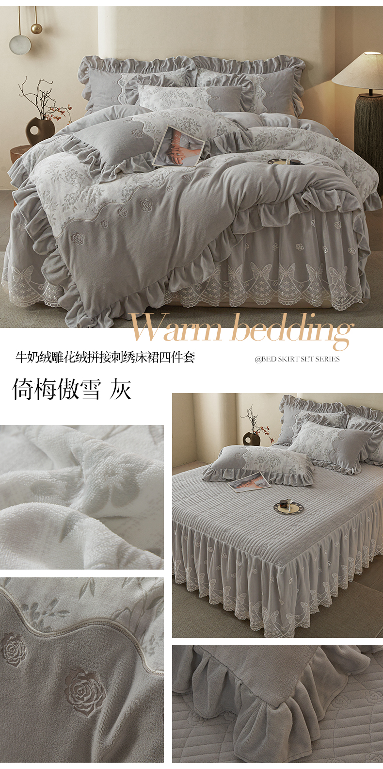 (总)宜凡家纺 2025新款兔绒提花牛奶绒夹棉床裙四件套,爱心 少女粉,爱心 粉紫,爱心 驼色,蝶舞 大红,蝶舞 米色,蝶舞 浅紫,蝶舞 玉色,简爱 苍青,简爱 豆沙紫,简爱 玉色,樱桃 苍青,樱桃 豆沙紫,樱桃 奶油白