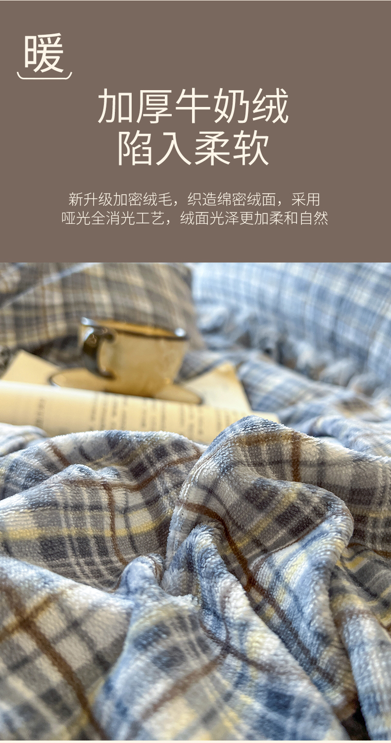 网红馆(ck家纺) 2025新款高克重牛奶绒床盖系列-米娅 米娅-蓝