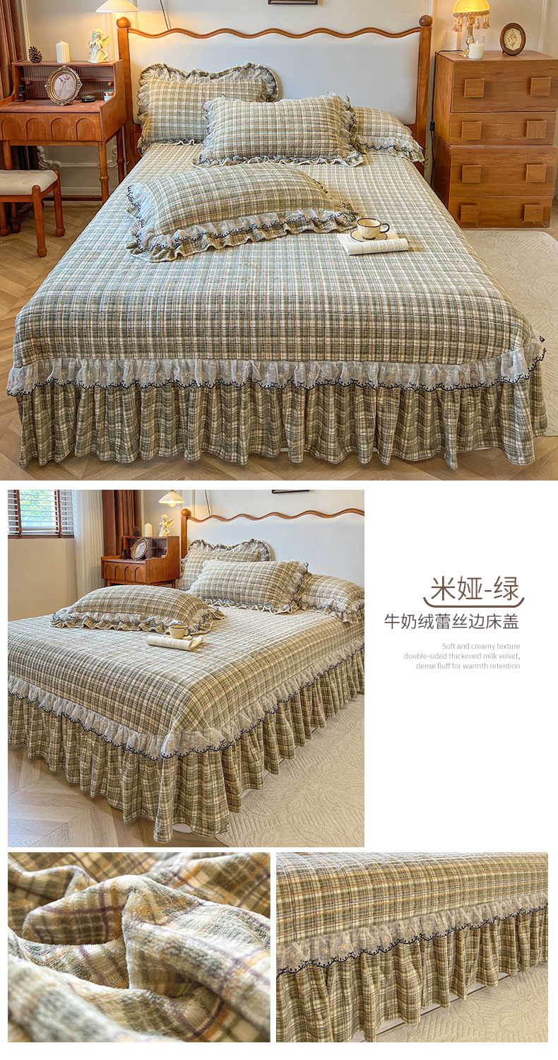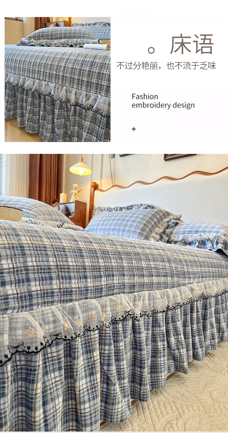 (总)网红馆(ck家纺) 2026新款色织蕾丝边床裙款床笠,宝石蓝,黛绿色,浪漫紫,奶茶色,石青,香妃粉,烟熏灰