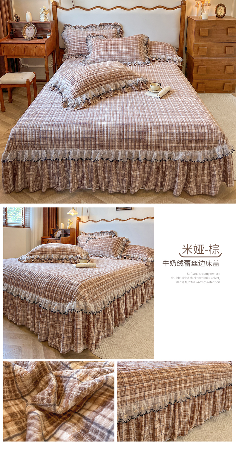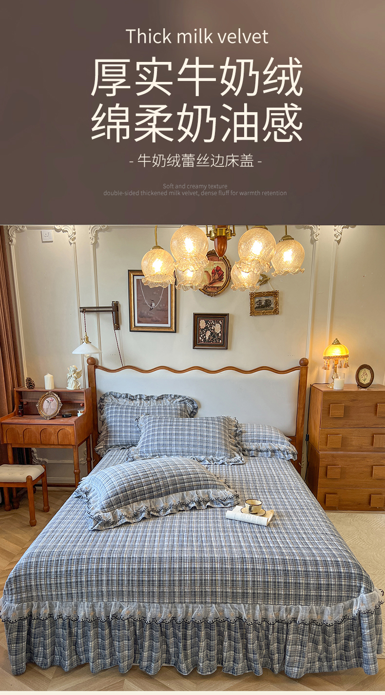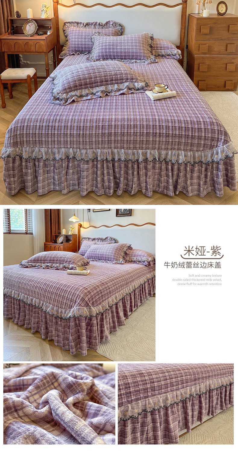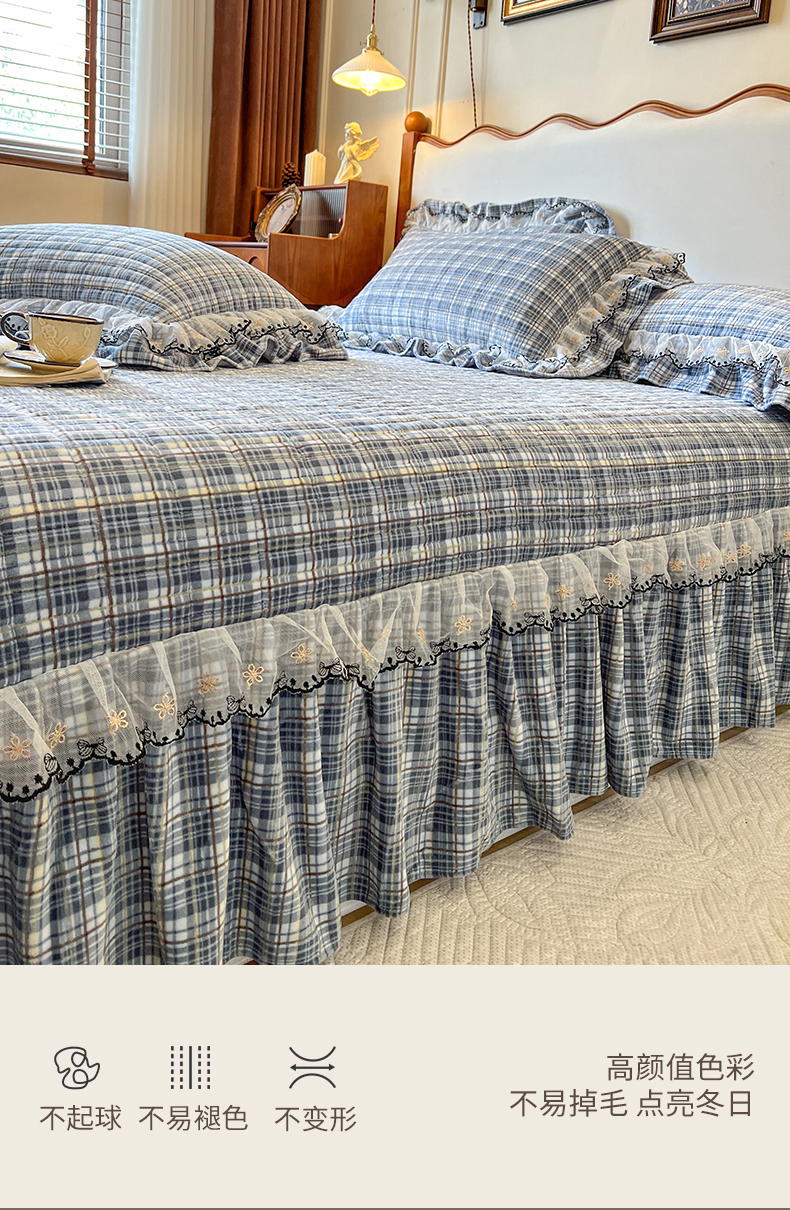 • 91家纺网 家纺一手货源 找家纺 (总)网红馆(ck家纺) 2026新款色织蕾丝边床裙款床笠,宝石蓝,黛绿色,浪漫紫,奶茶色,石青,香妃粉,烟熏灰
