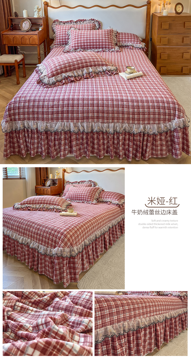 (总)网红馆(ck家纺) 2026新款全棉蕾丝花边床裙款床笠晨暮花间系列,绯红,粉色,麦绿,米色,浅紫,雾蓝