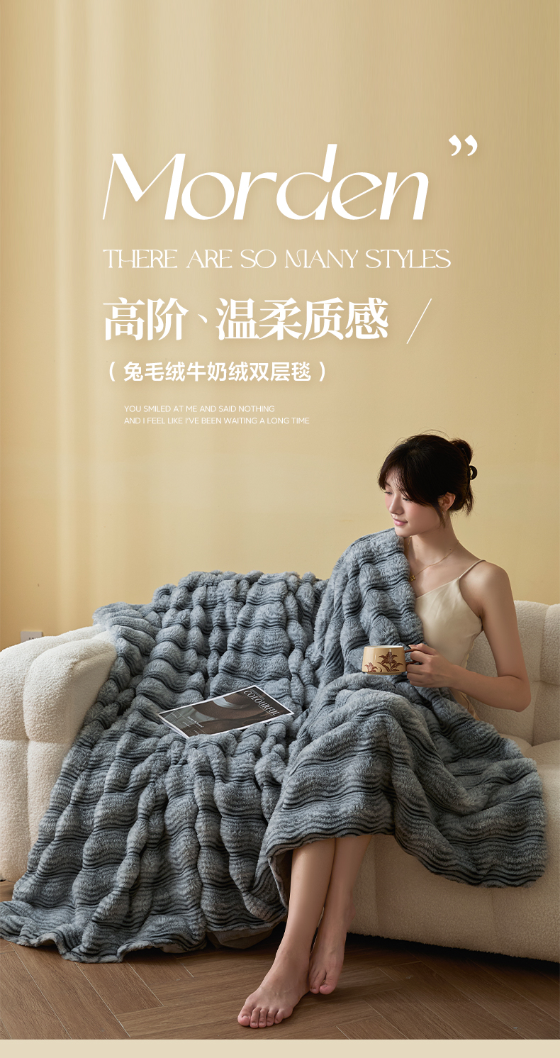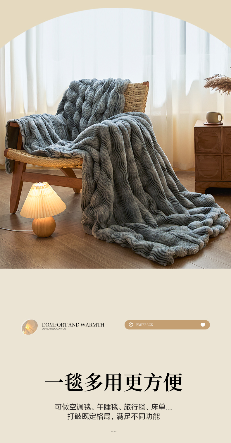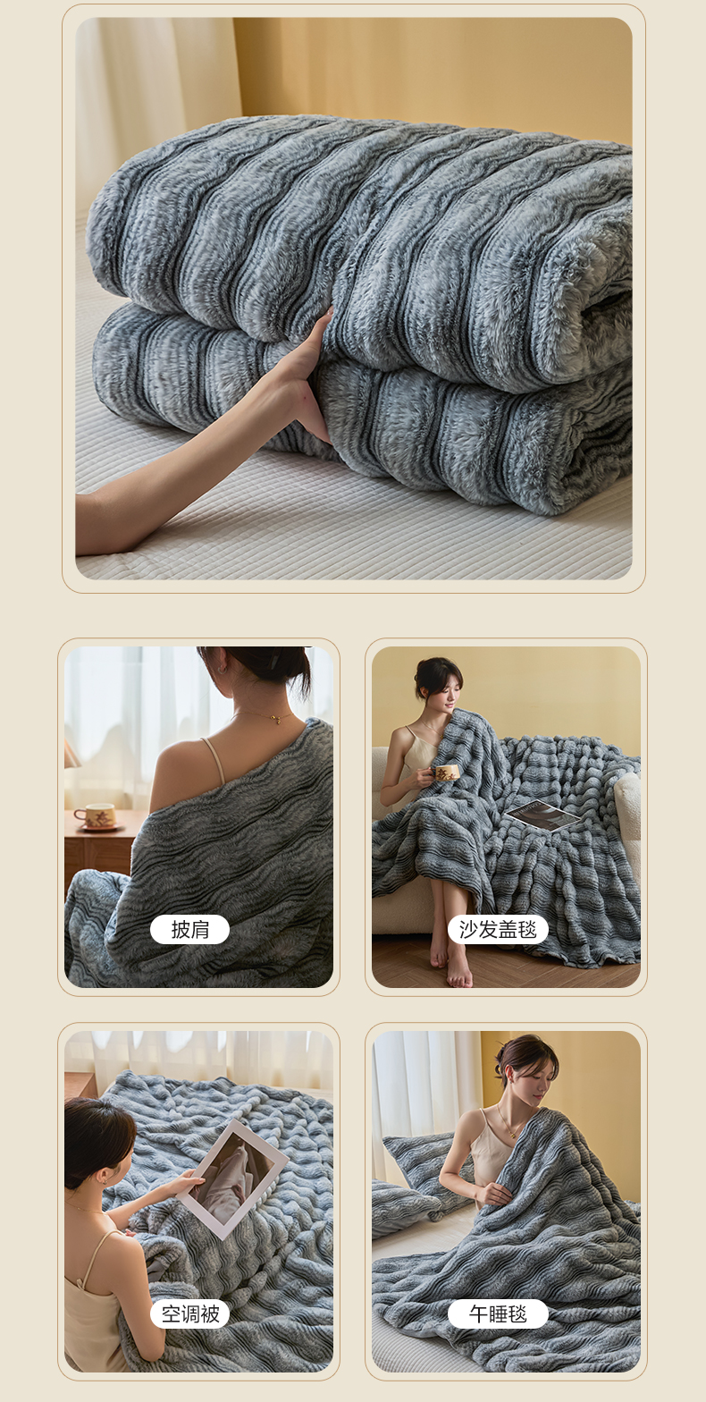 (总)欧邦 2025新款轻奢波纹加厚皮草兔毛绒双层毯,波纹-卡其,波纹-蓝灰,波纹-玫红,波纹-米杏,波纹-浅灰,波纹-深灰,波纹-深咖,叠拍图,沙发图