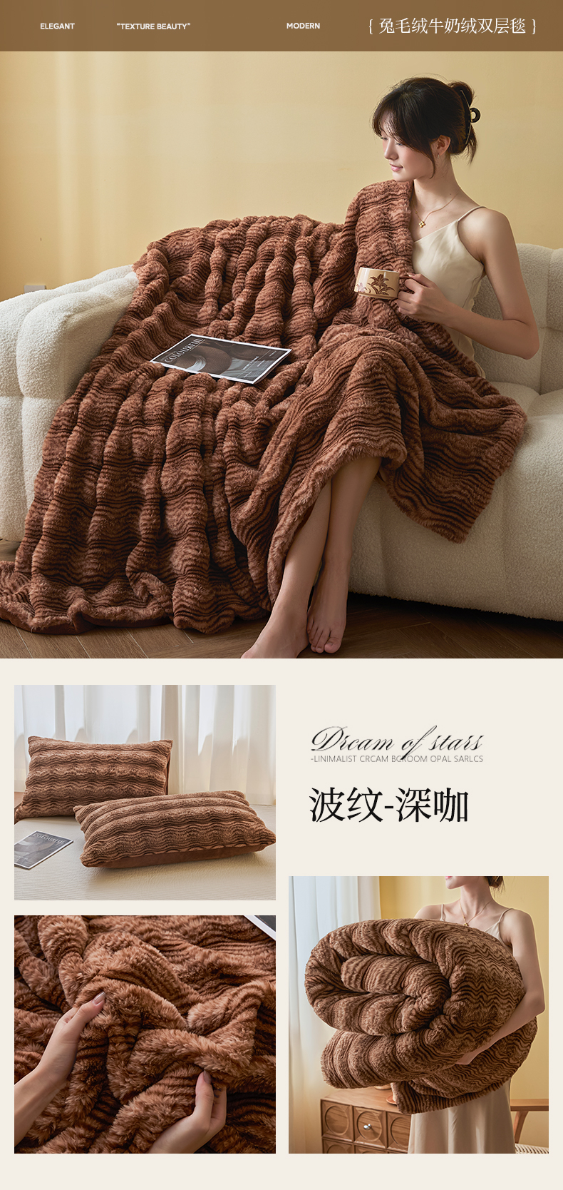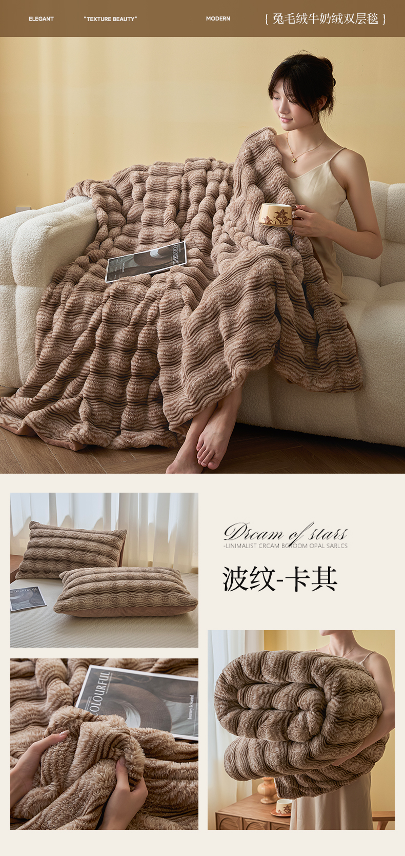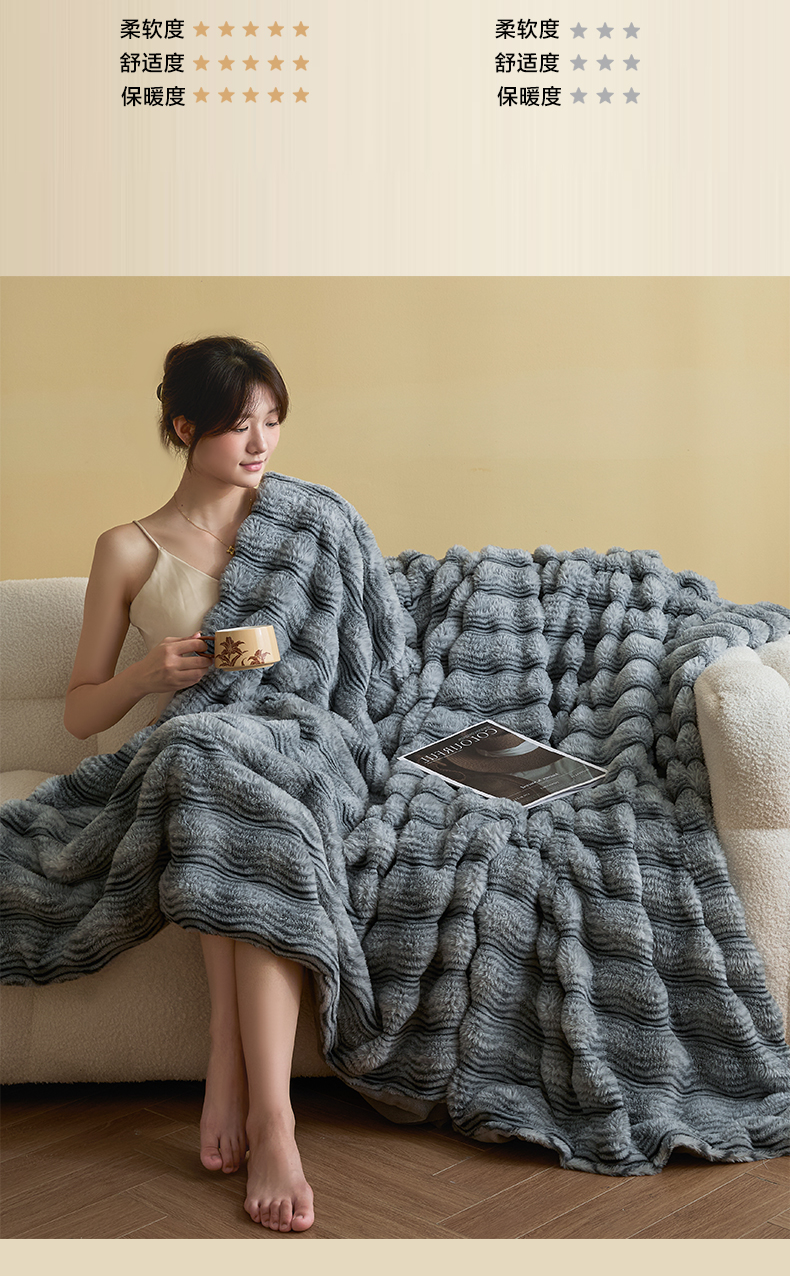 (总)欧邦 2025新款轻奢波纹加厚皮草兔毛绒双层毯,波纹-卡其,波纹-蓝灰,波纹-玫红,波纹-米杏,波纹-浅灰,波纹-深灰,波纹-深咖,叠拍图,沙发图