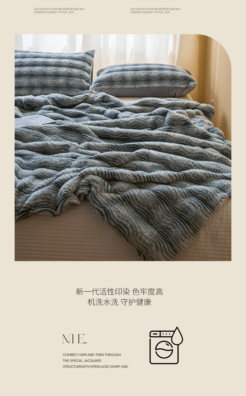 商品名称:欧邦 2025新款轻奢波纹加厚皮草兔毛绒双层毯 波纹-蓝灰
