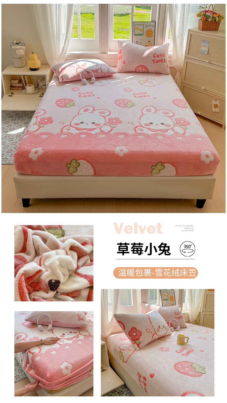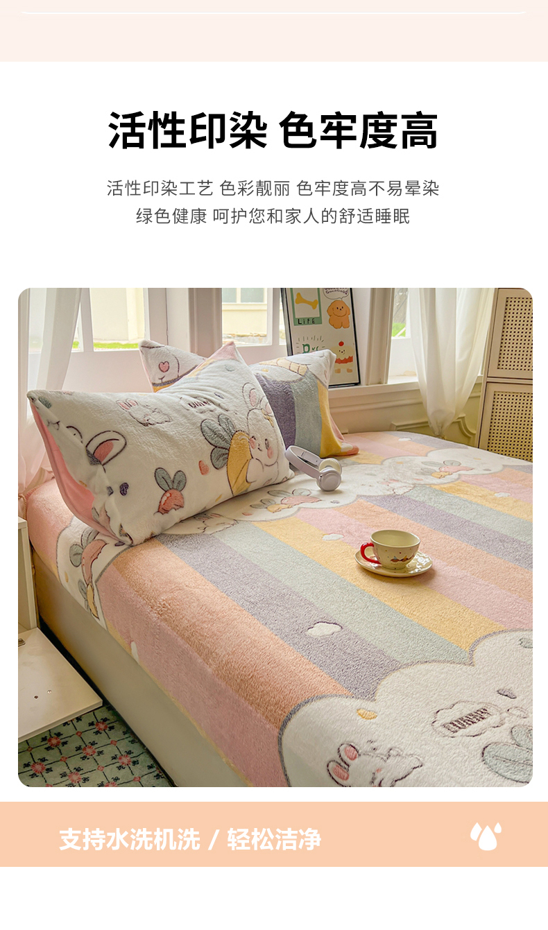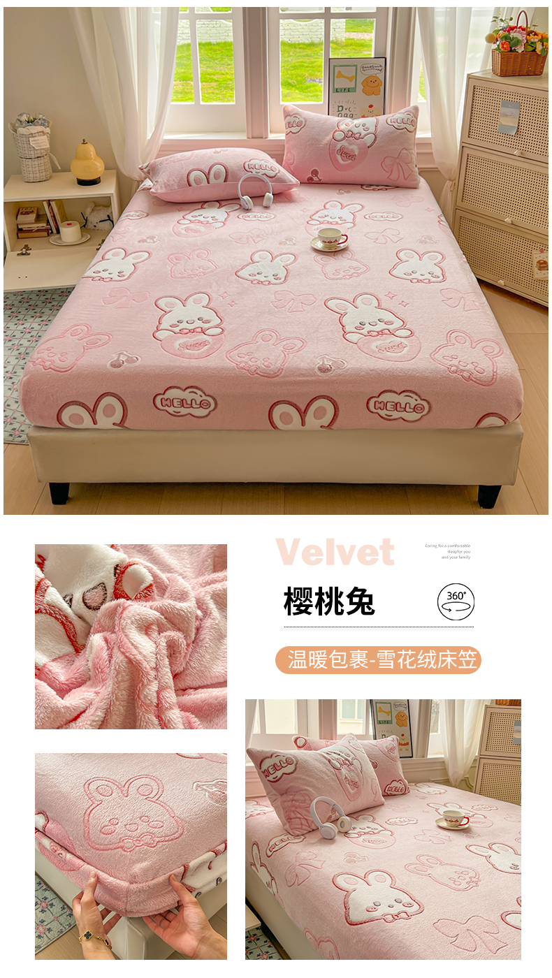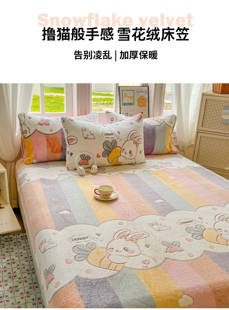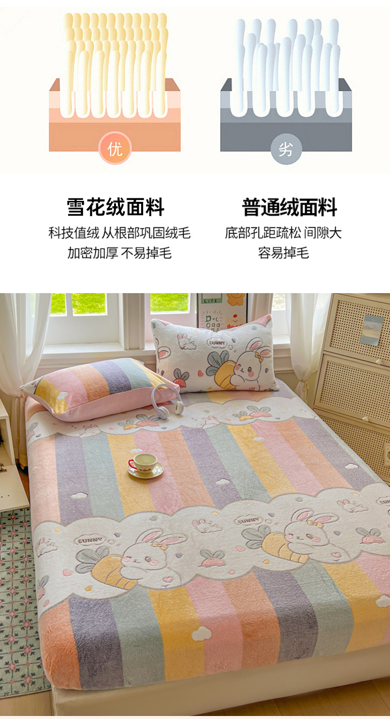 • 91家纺网 家纺一手货源 找家纺 娜朵家纺 2025新款180克雪花绒印花床笠 萝卜兔