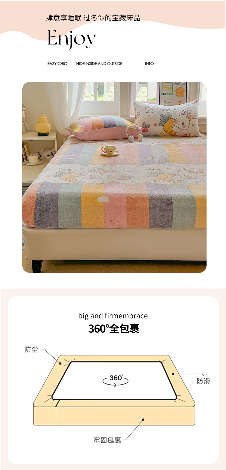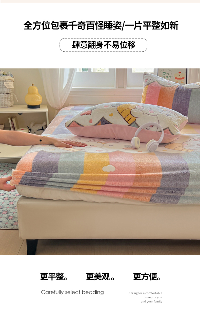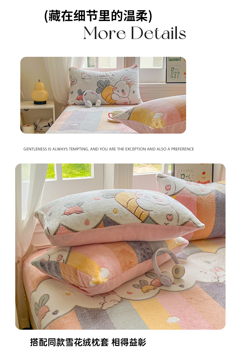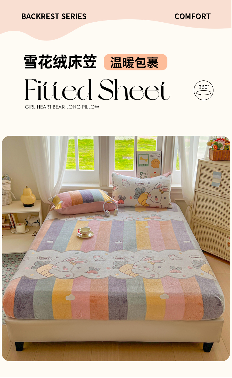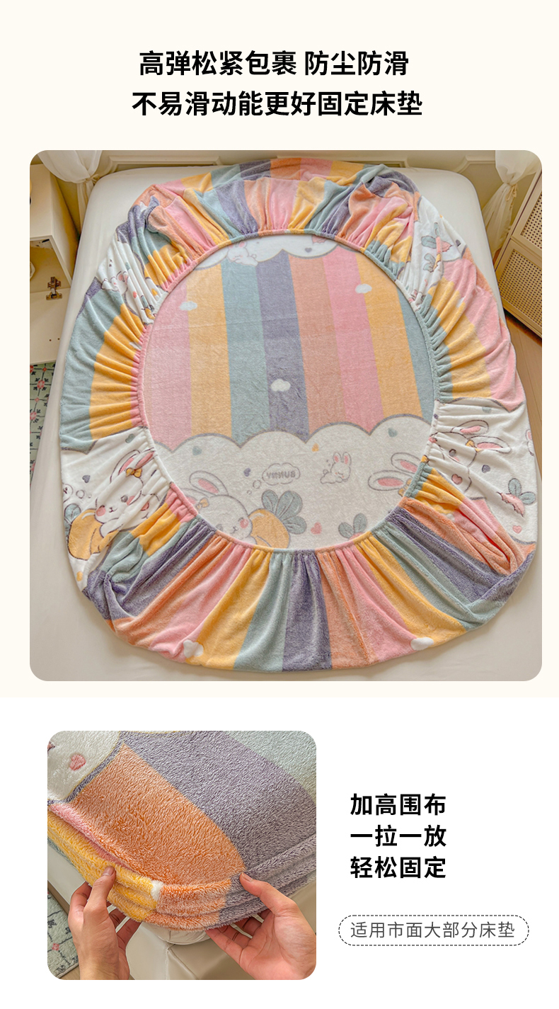 • 91家纺网 家纺一手货源 找家纺 娜朵家纺 2025新款180克雪花绒印花床笠 萝卜兔