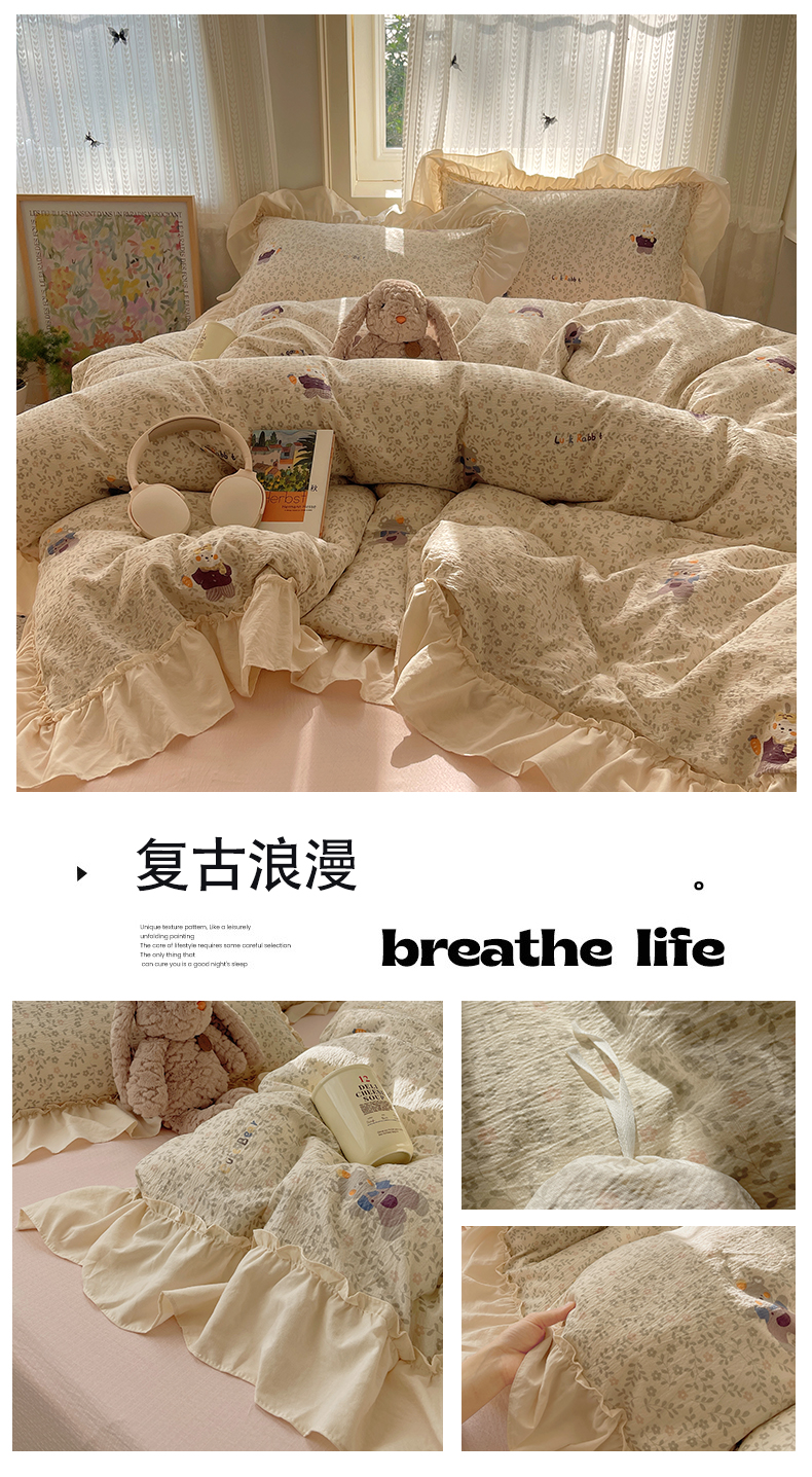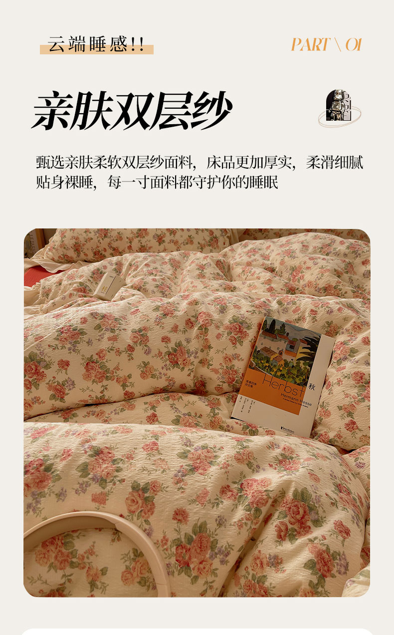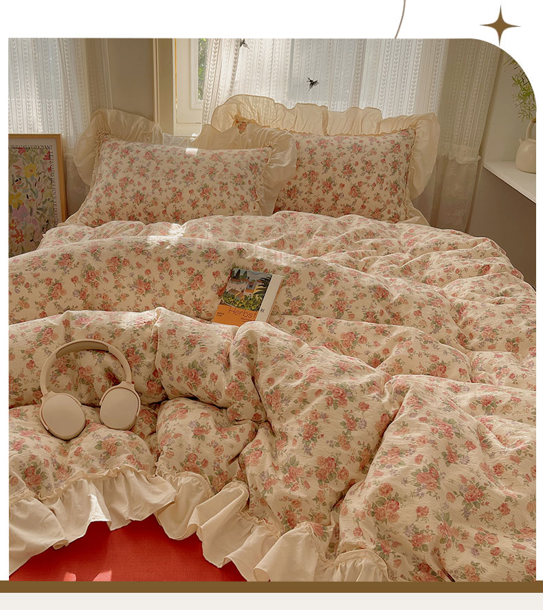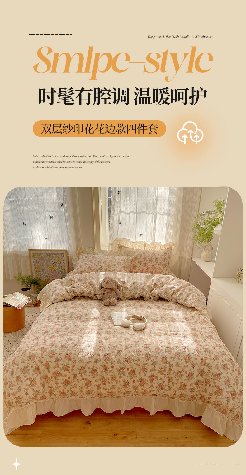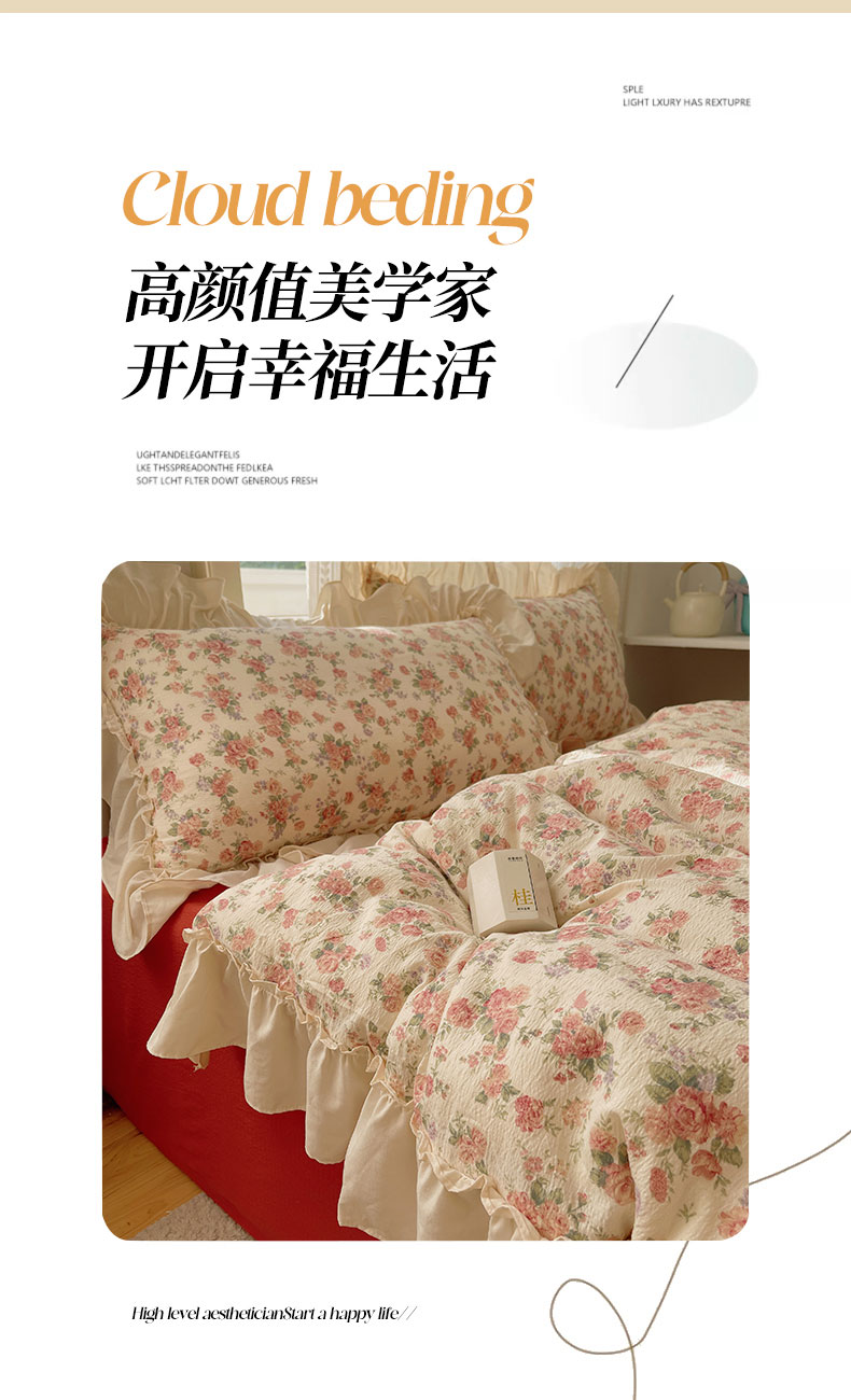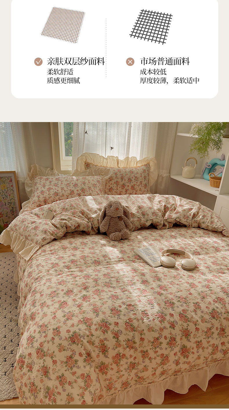 当前位置: 91家纺网 > 商品网购 > 床品套件 > 四件套 > 其它四件套 > 初念 2025新款法式花边款小碎花云感双层纱系列四件套-曼塔(小红书推荐)提供买家秀 曼塔-星眠云野