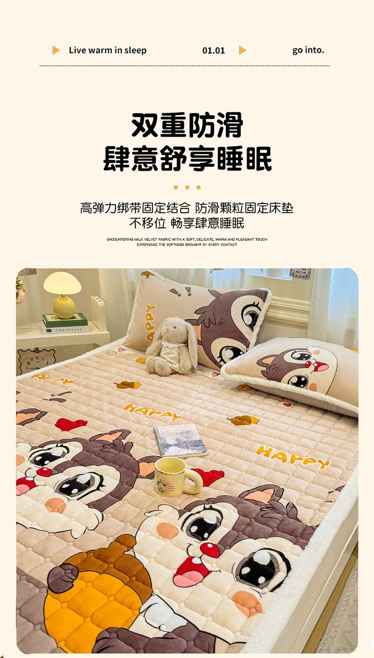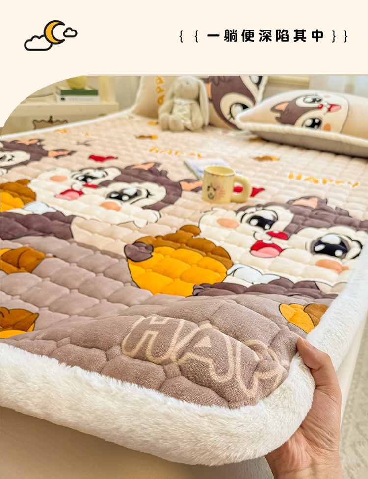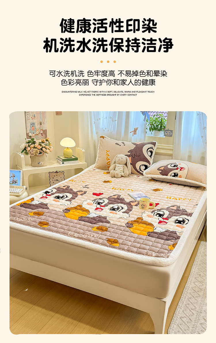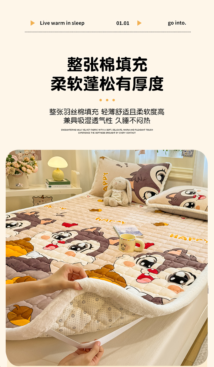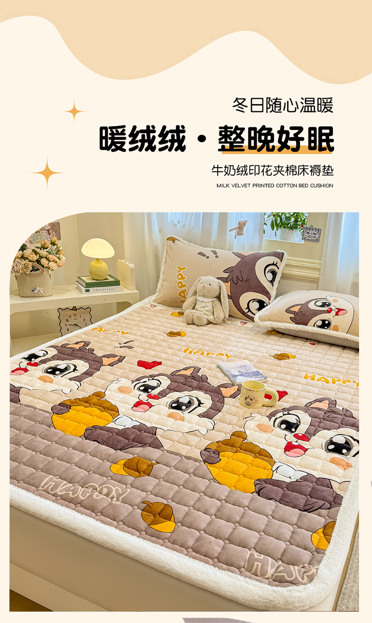 商品名称:梦初语 2025新款牛奶绒印花夹棉加厚款床护垫褥子大床场景-直播爆款(夹棉200克) 顽皮鼠