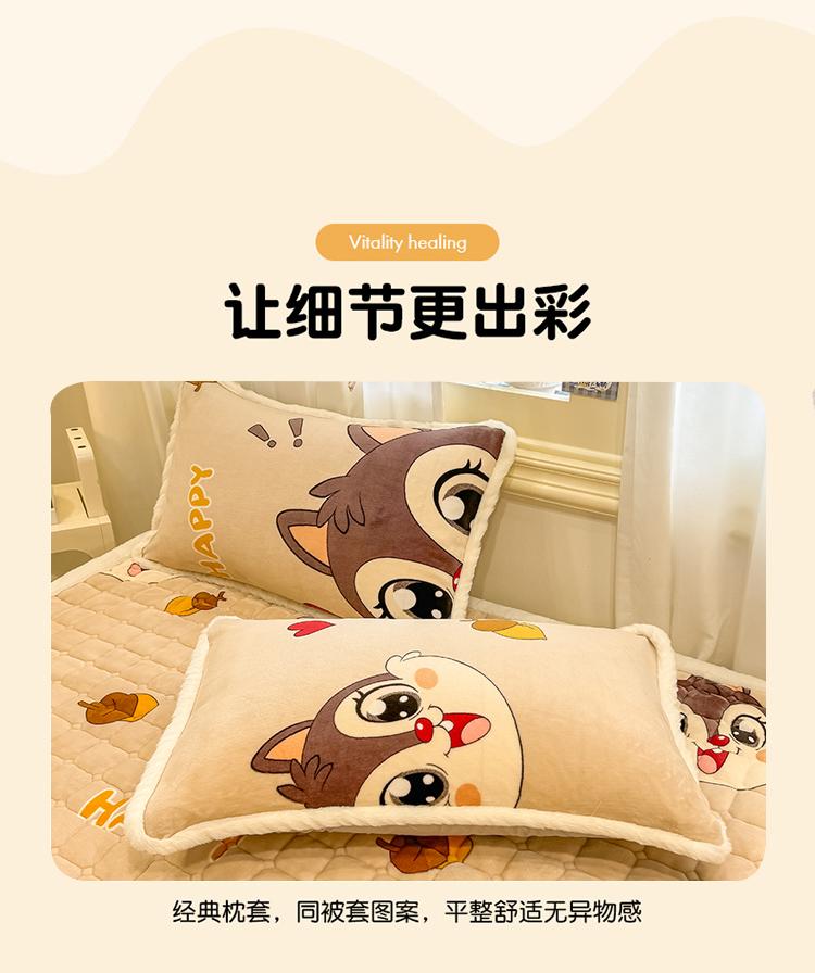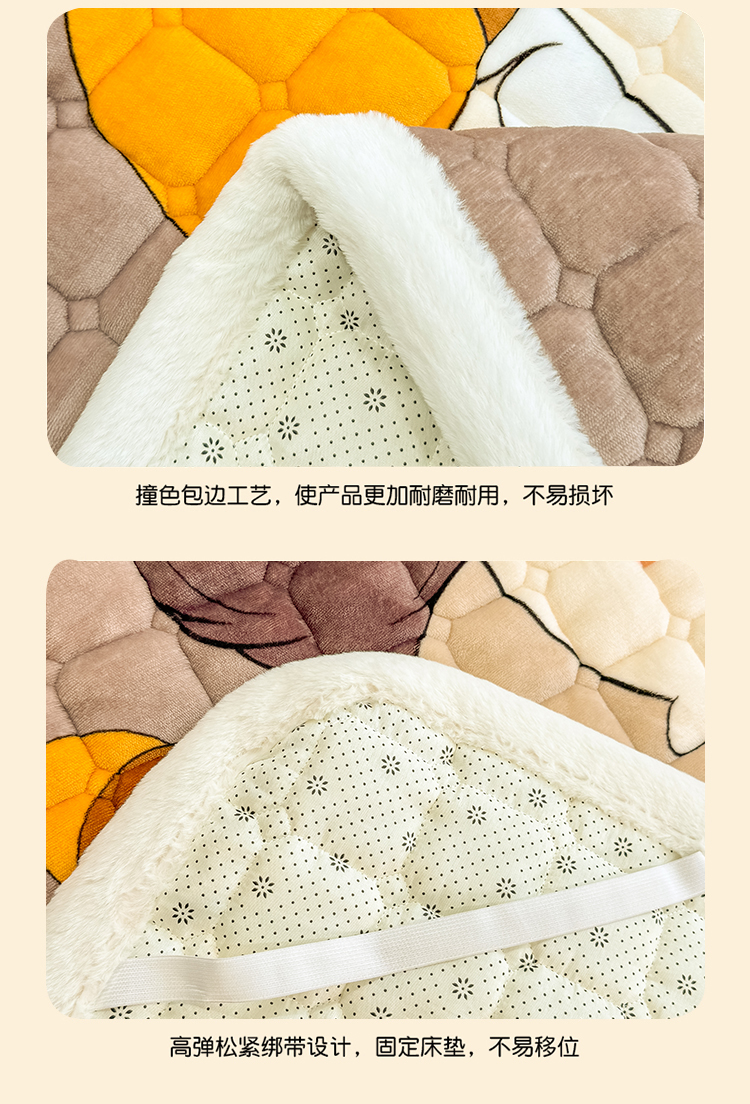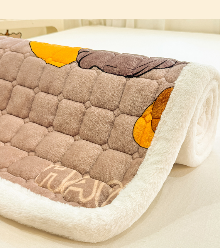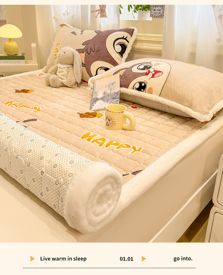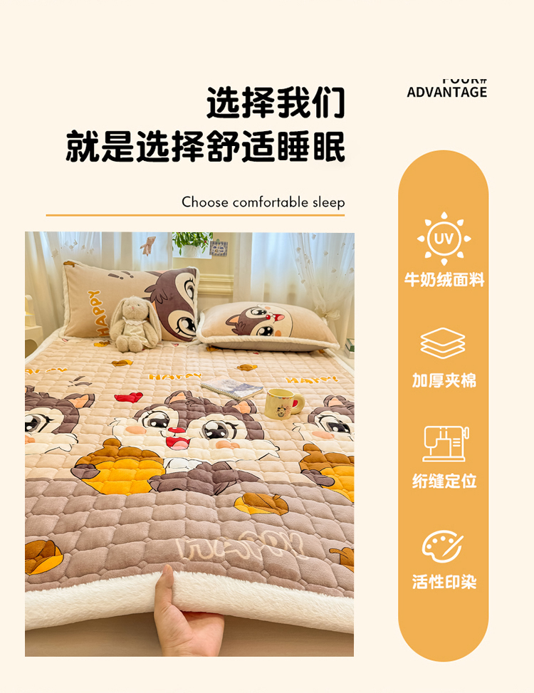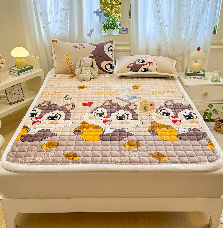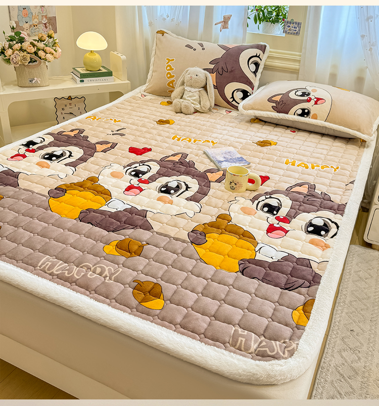 商品名称:梦初语 2025新款牛奶绒印花夹棉加厚款床护垫褥子大床场景-直播爆款(夹棉200克) 顽皮鼠