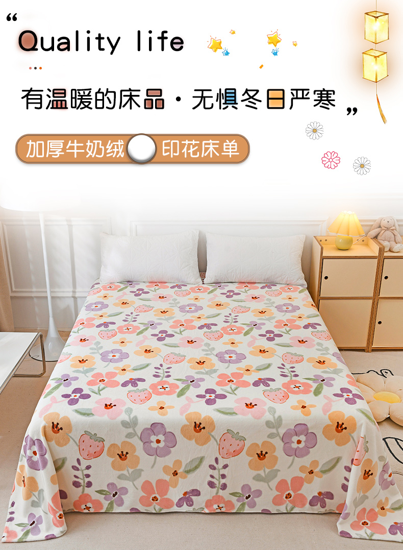 商品名称:金盛纺 2025新款高克重牛奶绒印花系列单床单(可定制) 花香伊人