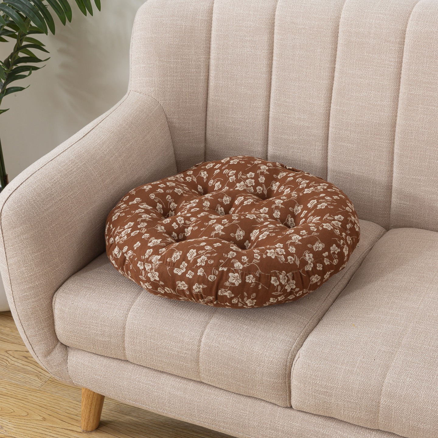 商品名称:小欢喜 2025新款全棉双层纱坐垫 圆垫-夕颜-咖
