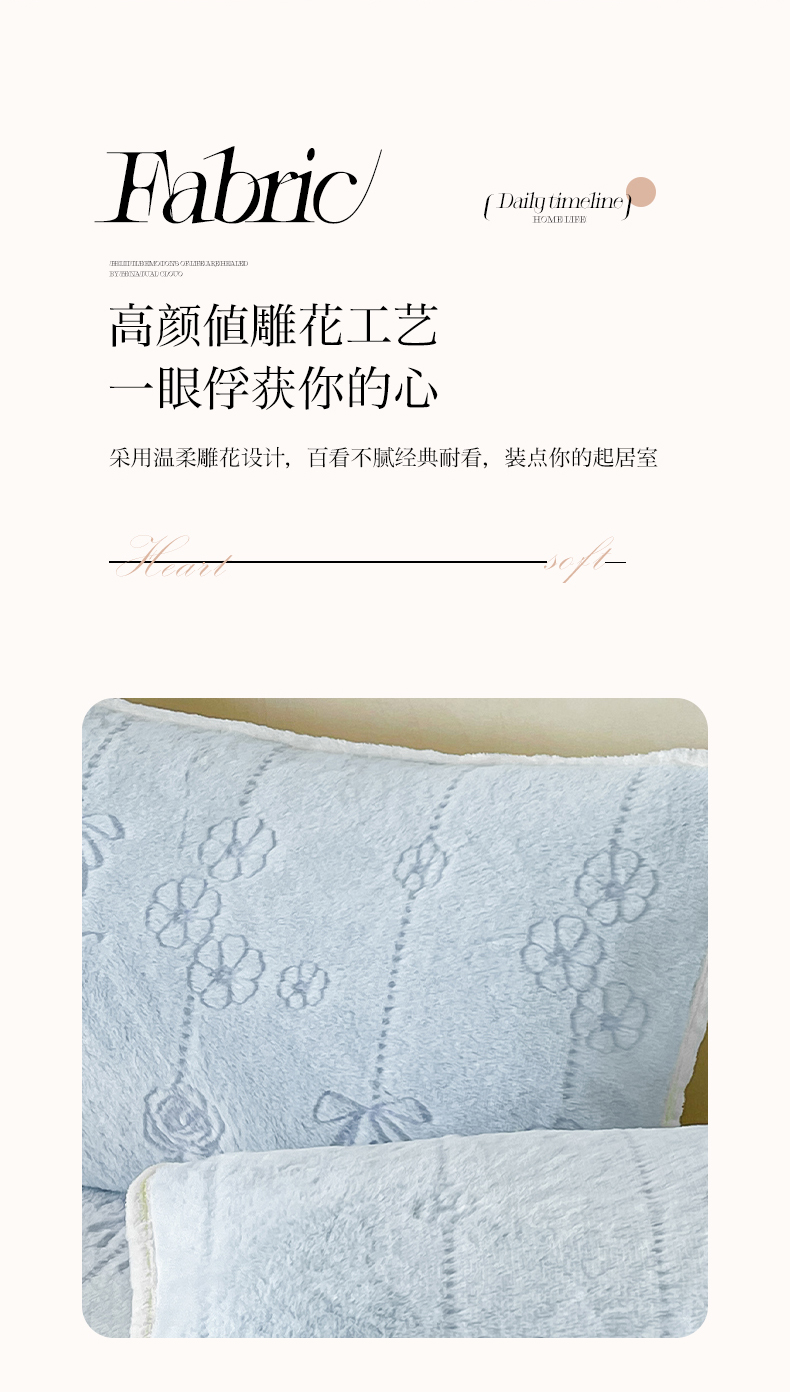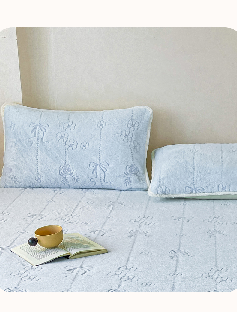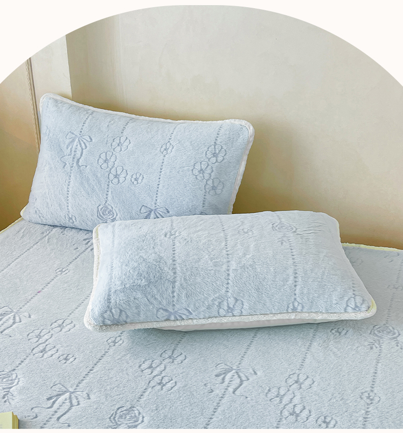 商品名称:眠势力 2025新款兔毛绒雕花枕套冬季兔兔绒加绒枕头套-拉链款 若溪-霜兰