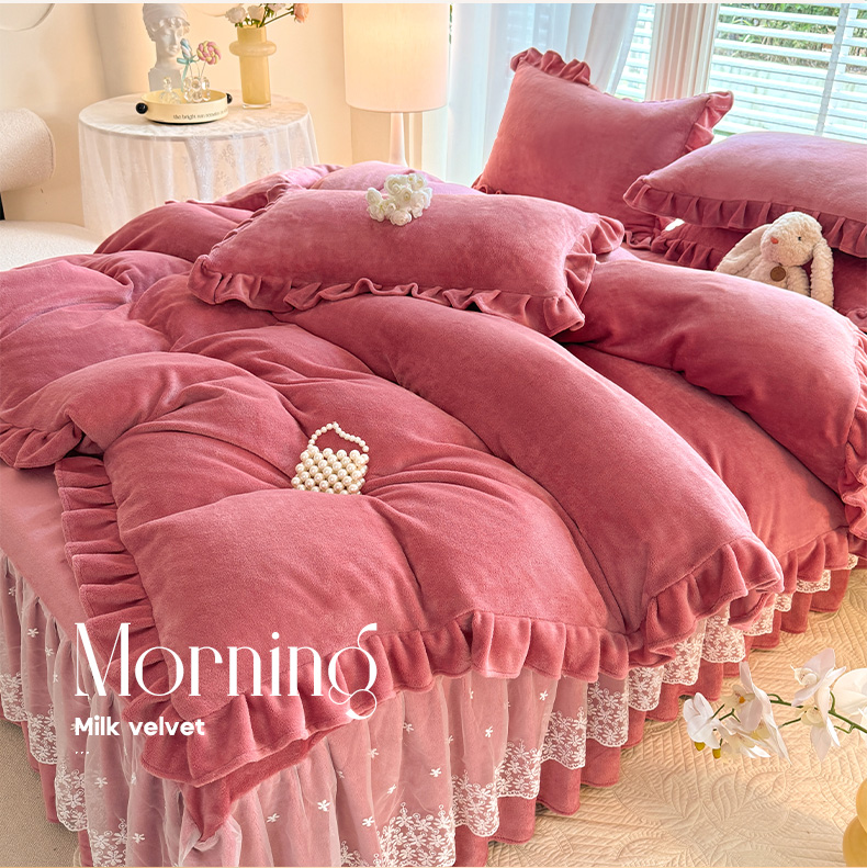 当前位置: 91家纺网 > 商品网购 > 床品套件 > 四件套 > 牛奶绒四件套 > 优家居 2025秋冬高克重牛奶绒床裙款四件套纯色蕾丝边花边刺绣法式公主风床裙款被套 香芋紫