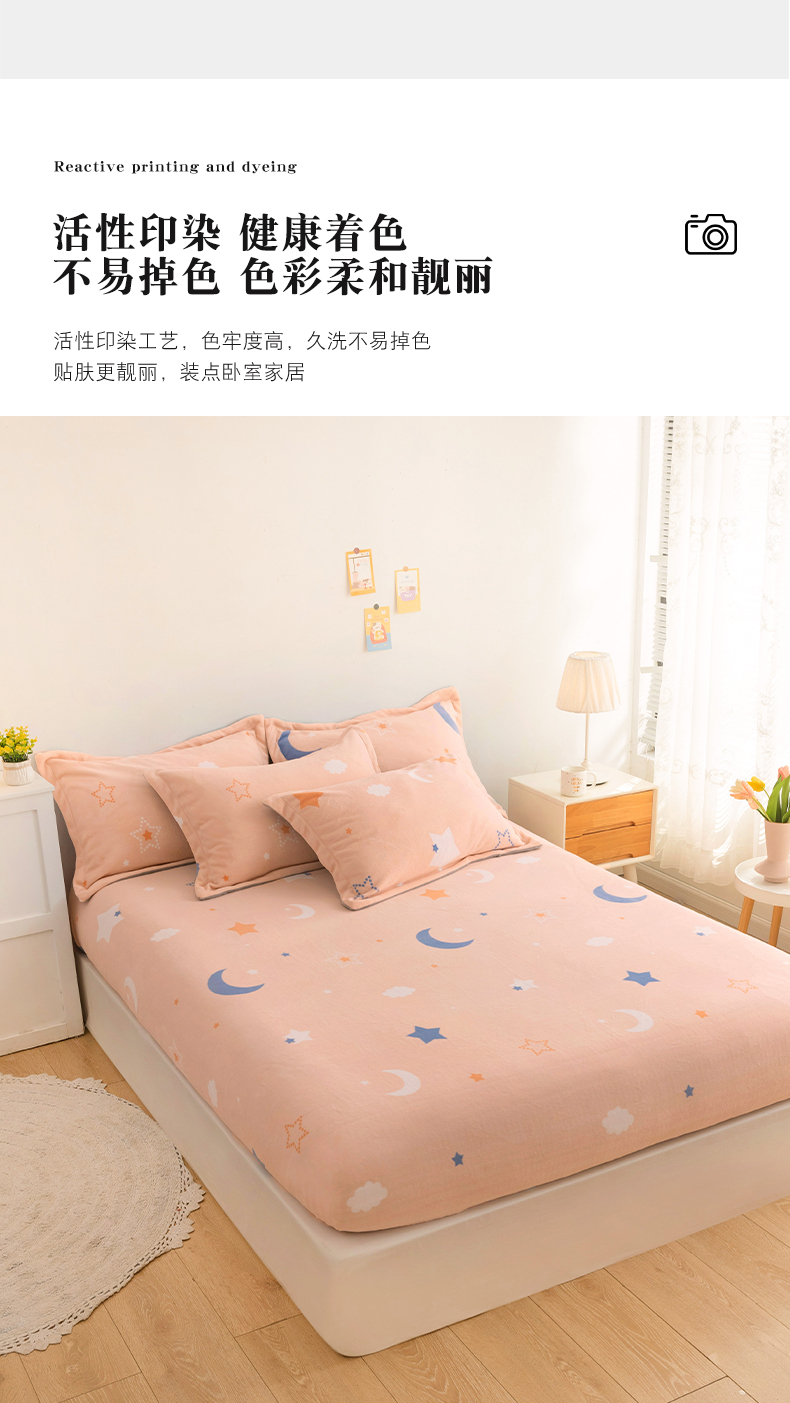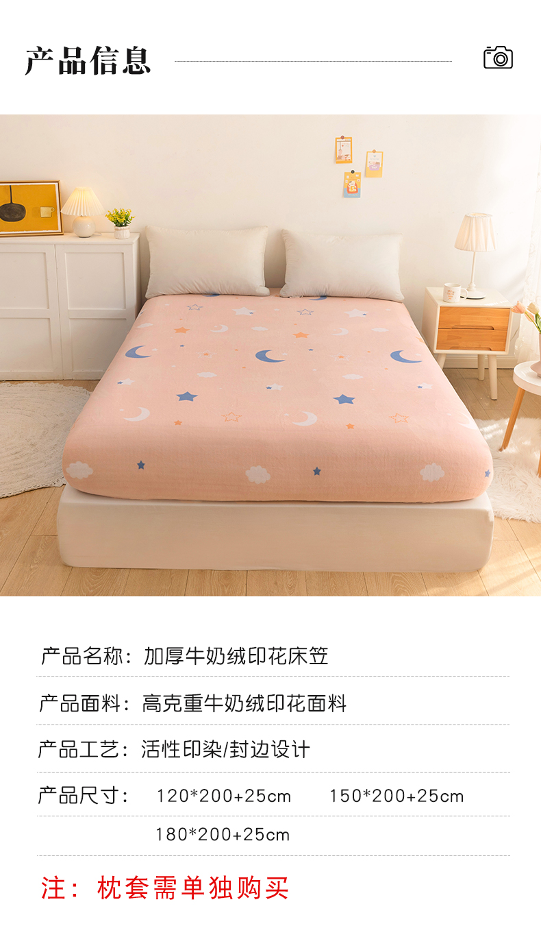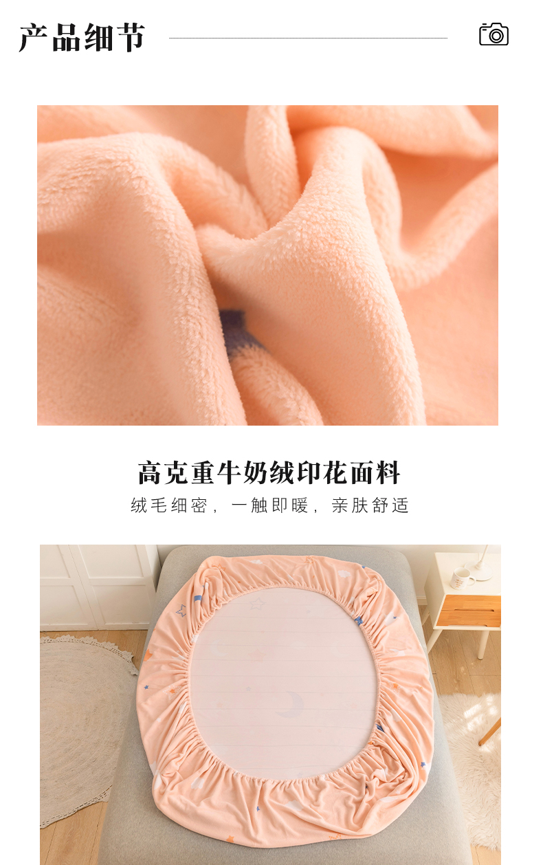 商品名称:金盛纺 2025新款高克重牛奶绒印花系列单床笠(可定制) 梦幻星空(粉)