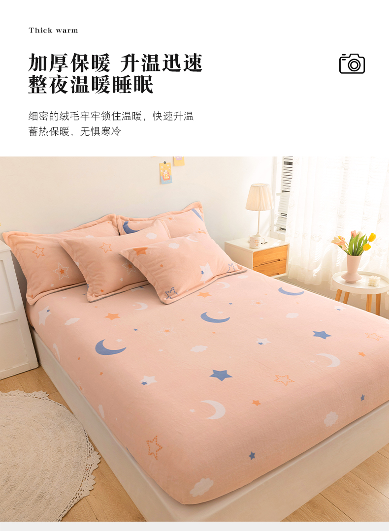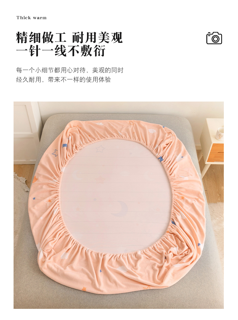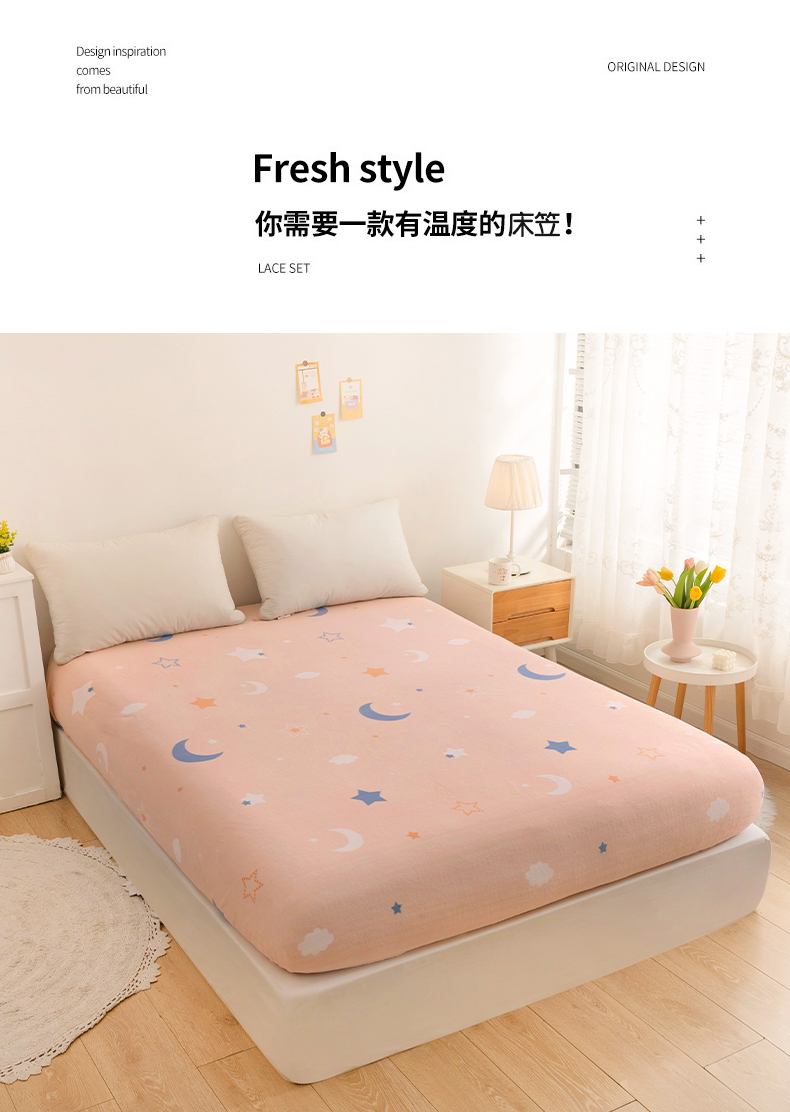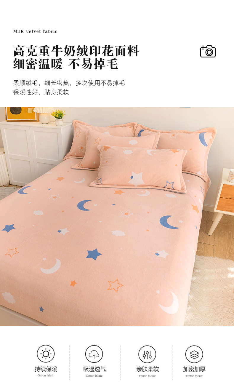 商品名称:金盛纺 2025新款高克重牛奶绒印花系列单床笠(可定制) 梦幻星空(粉)