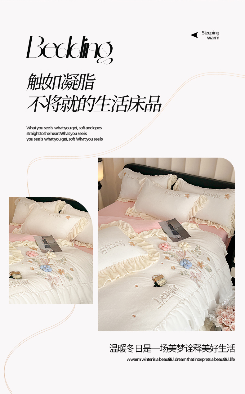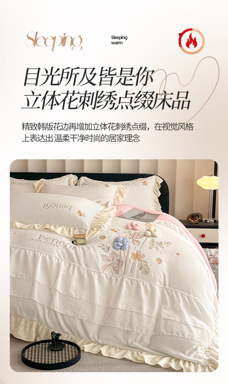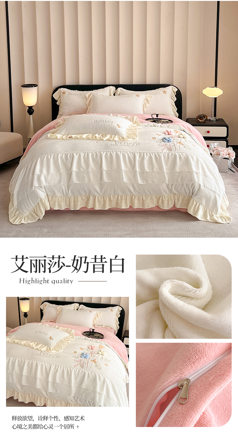 商品名称:(总)爱家(原缔乐家纺) 2025新款A类高克重牛奶绒立体花刺绣四件套-艾丽莎