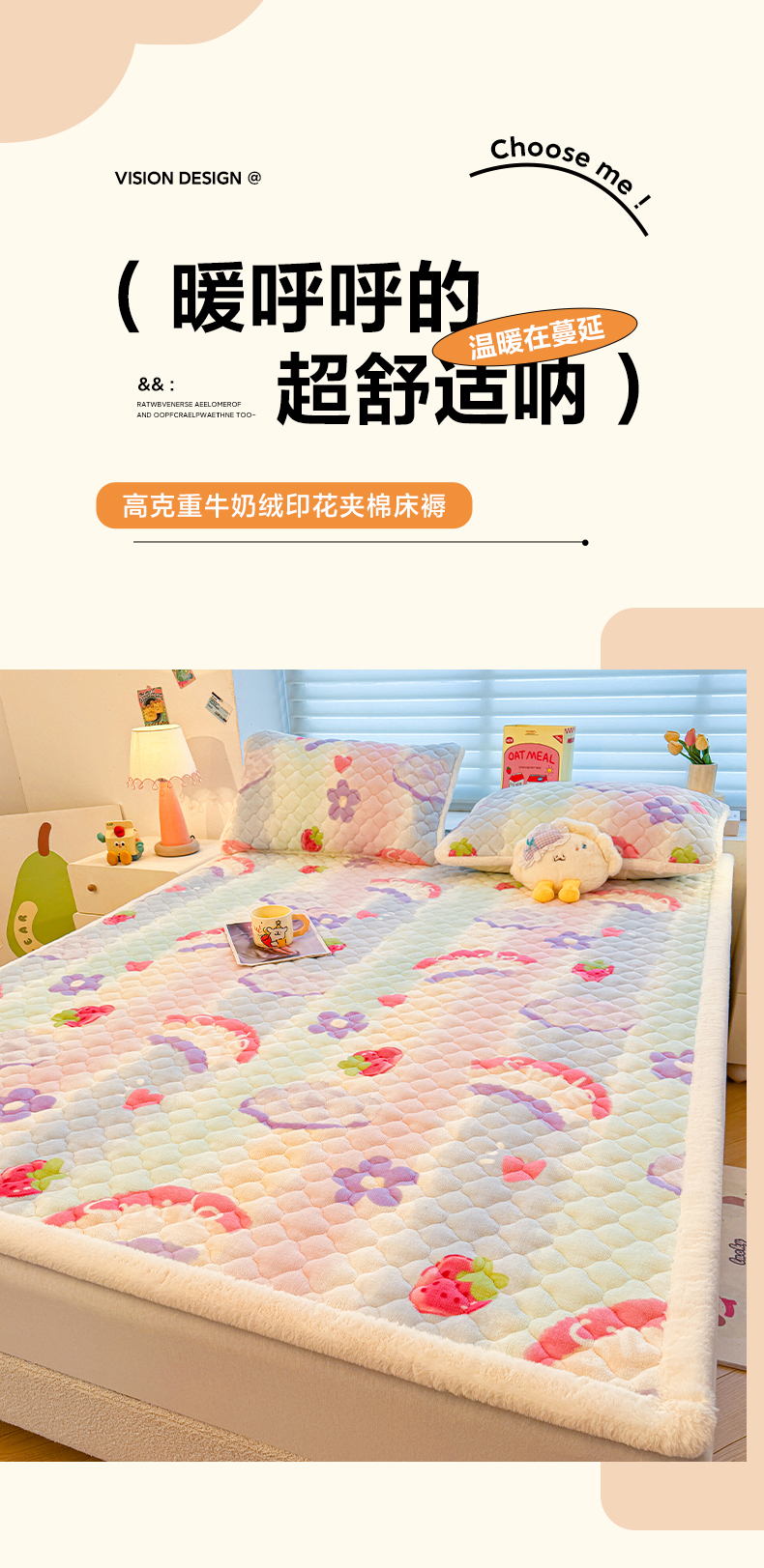 当前位置: 91家纺网 > 商品网购 > 床垫/床褥 > 珊瑚绒床垫 > 喜居 2025新款高克重印花牛奶绒夹棉床褥床垫子褥子床护垫 彩虹草莓