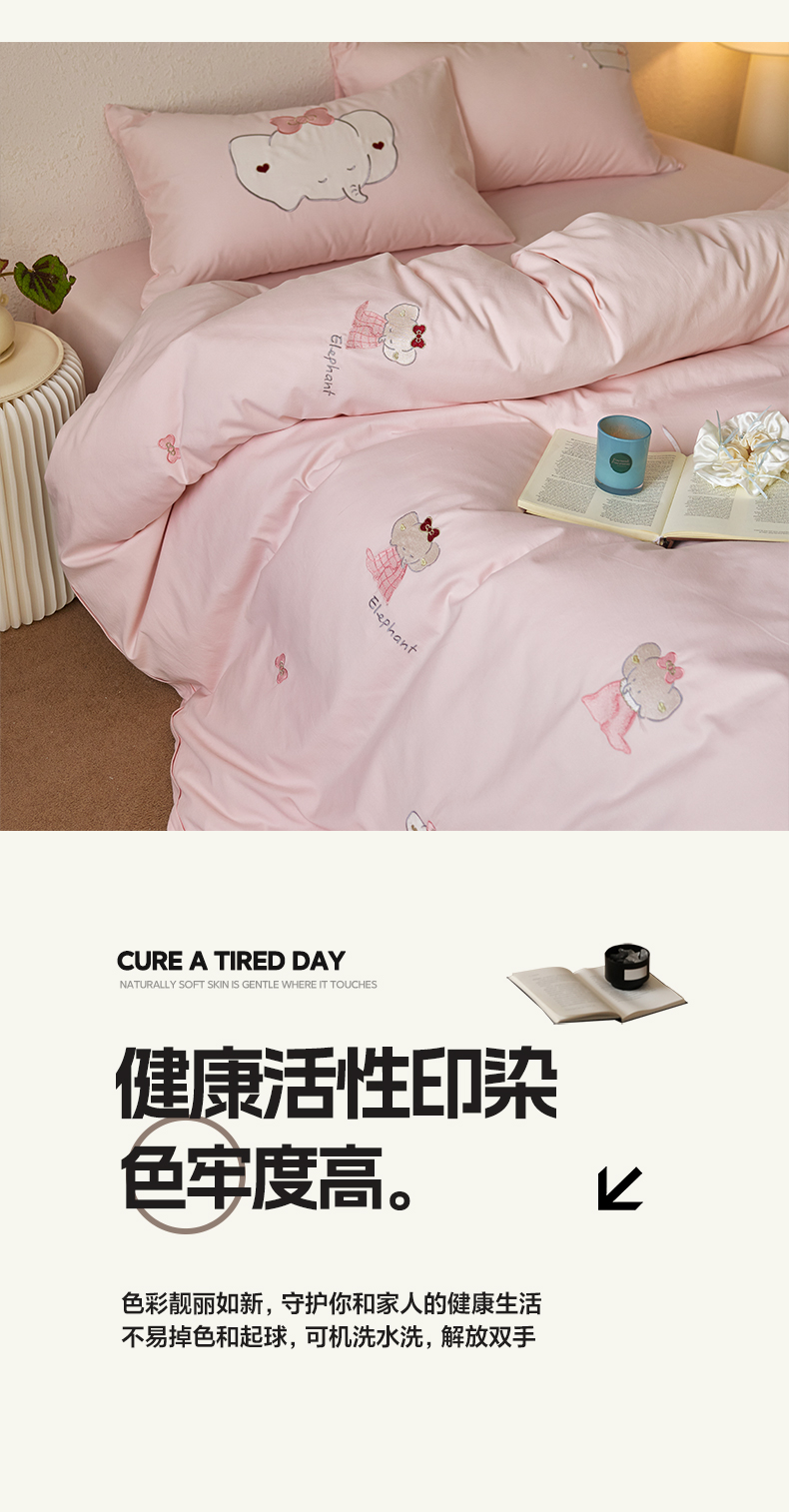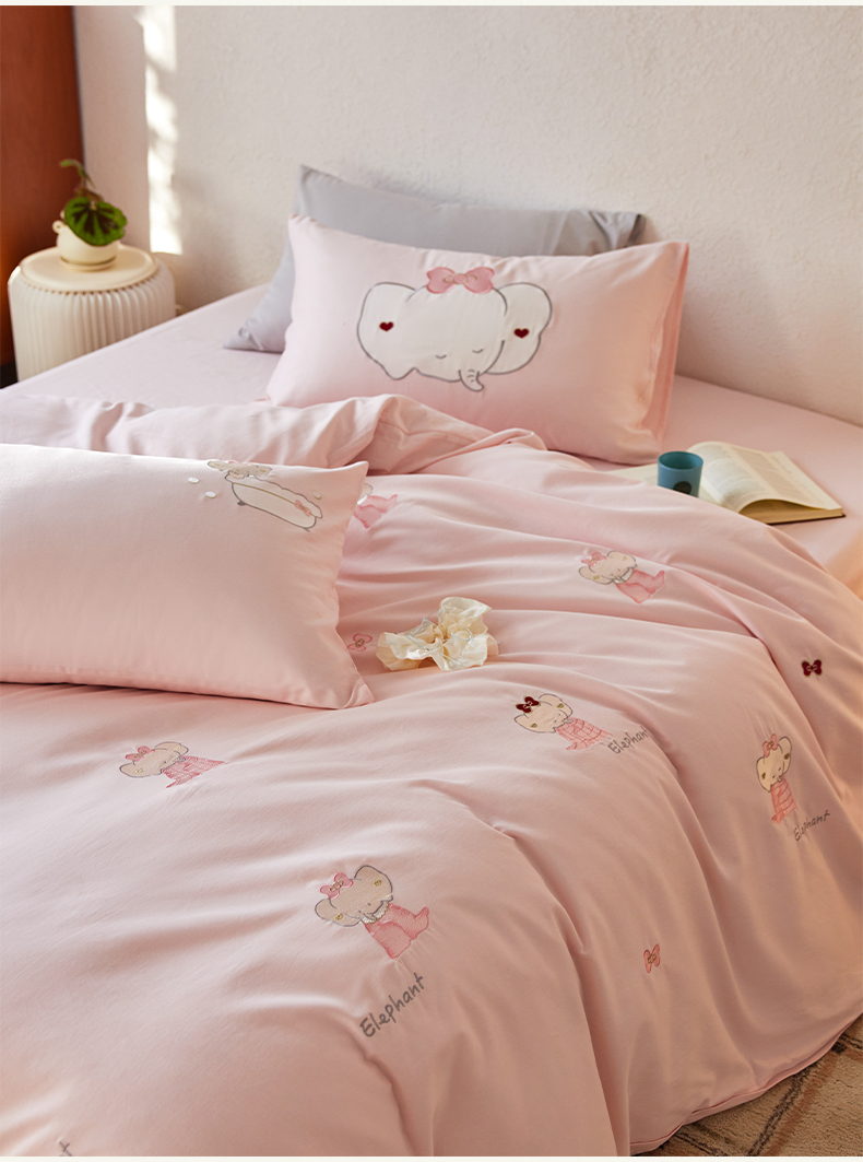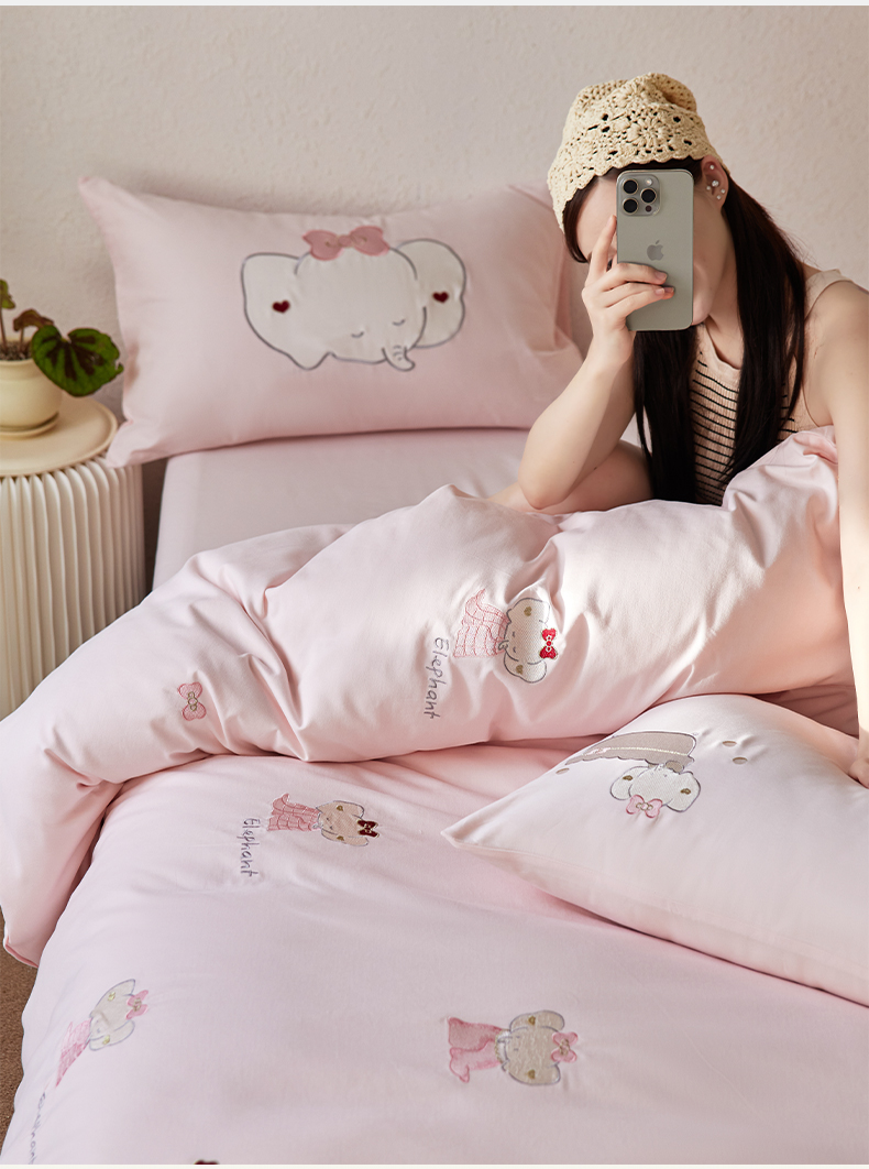 当前位置: 91家纺网 > 商品网购 > 床品套件 > 四件套 > 全棉普通四件套 > 简纯主义 2025新款全棉纯棉毛巾绣磨毛四件套-莉娜小象 莉娜小象-粉