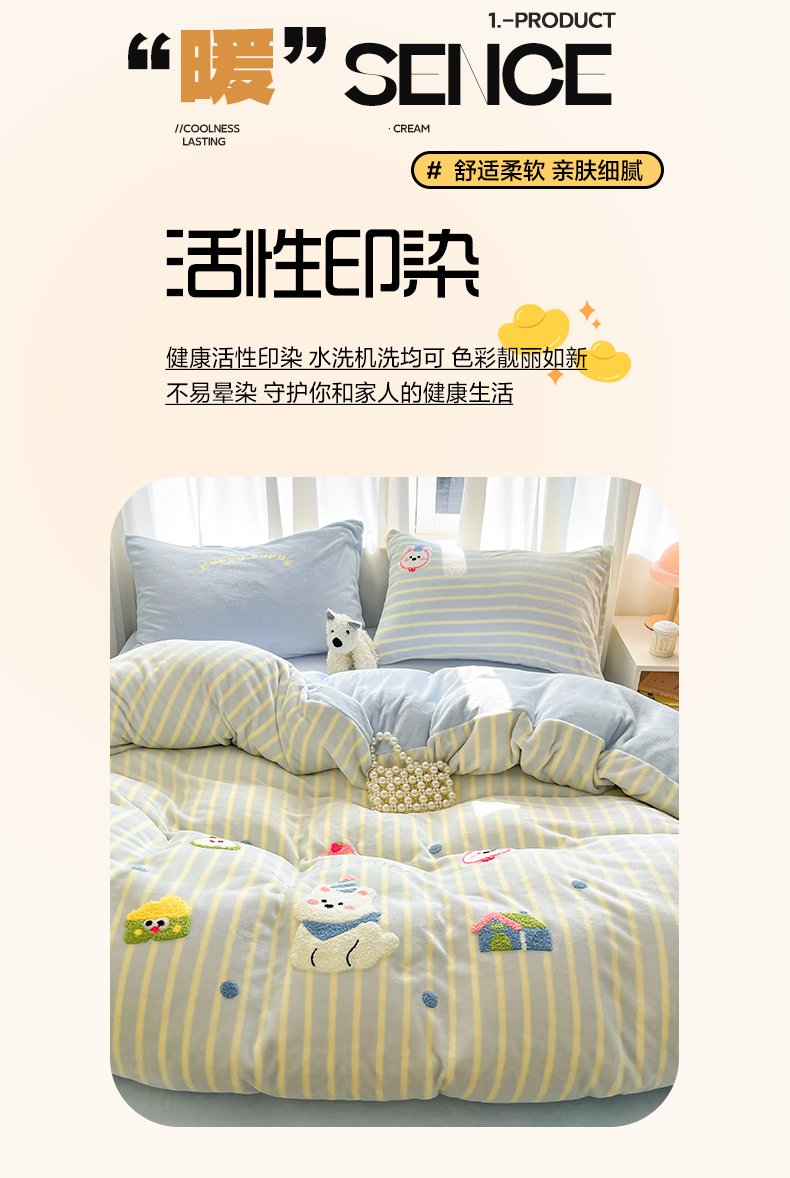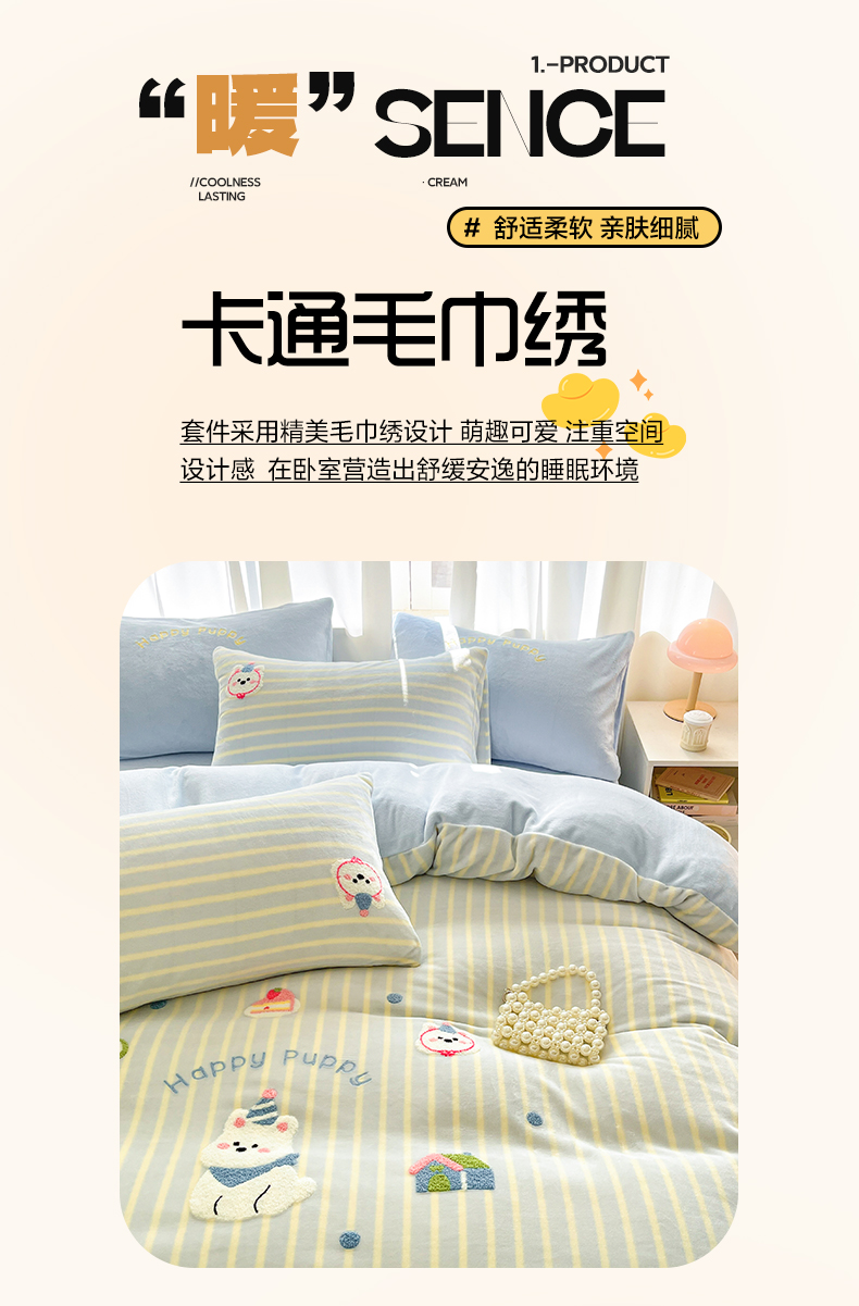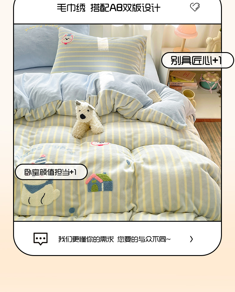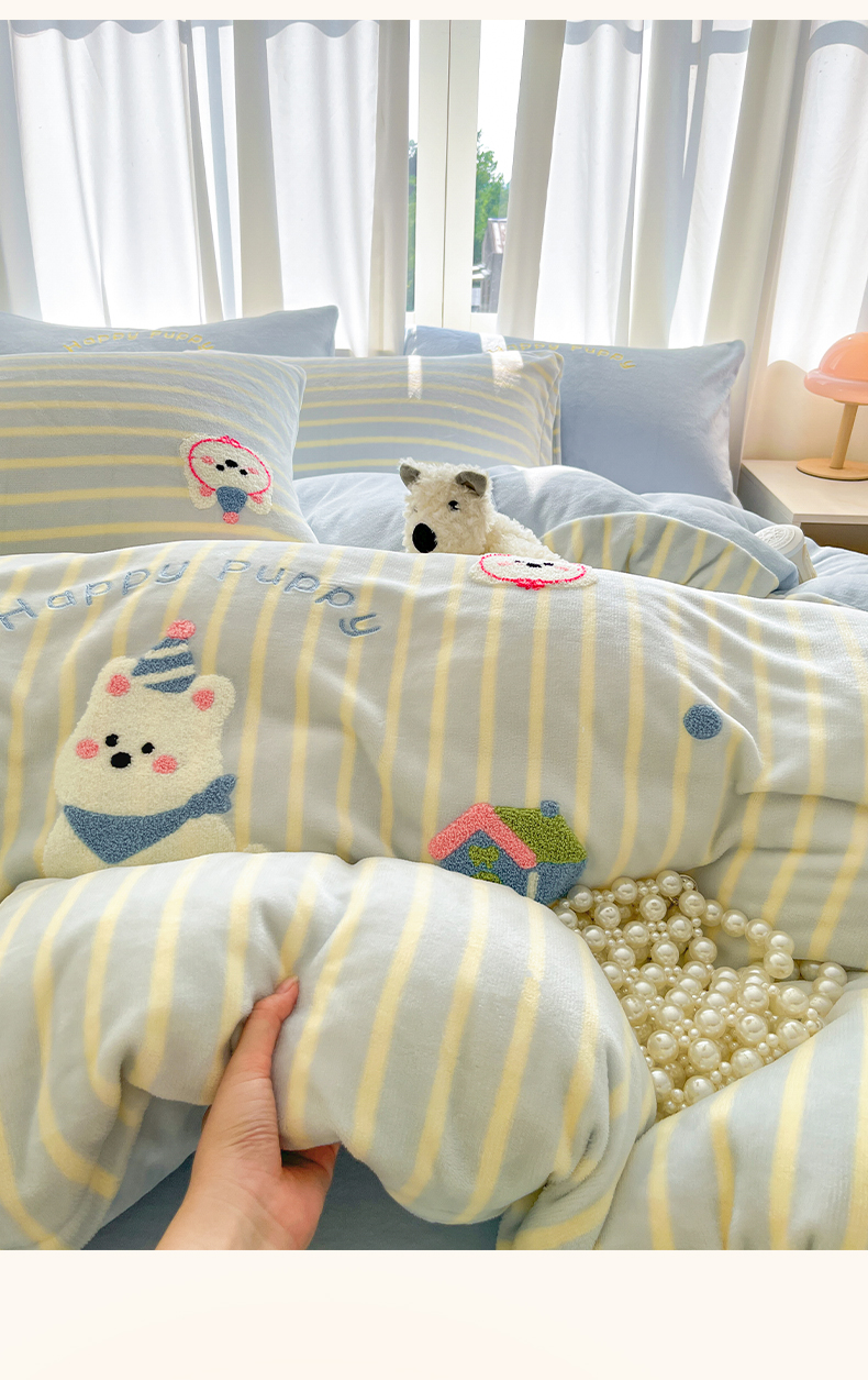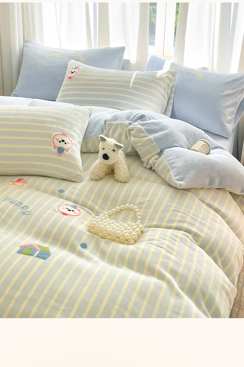 当前位置: 91家纺网 > 商品网购 > 床品套件 > 四件套 > 牛奶绒四件套 > 如一 2025新款卡通毛巾绣系列牛奶绒四件套第二批 竖条西高