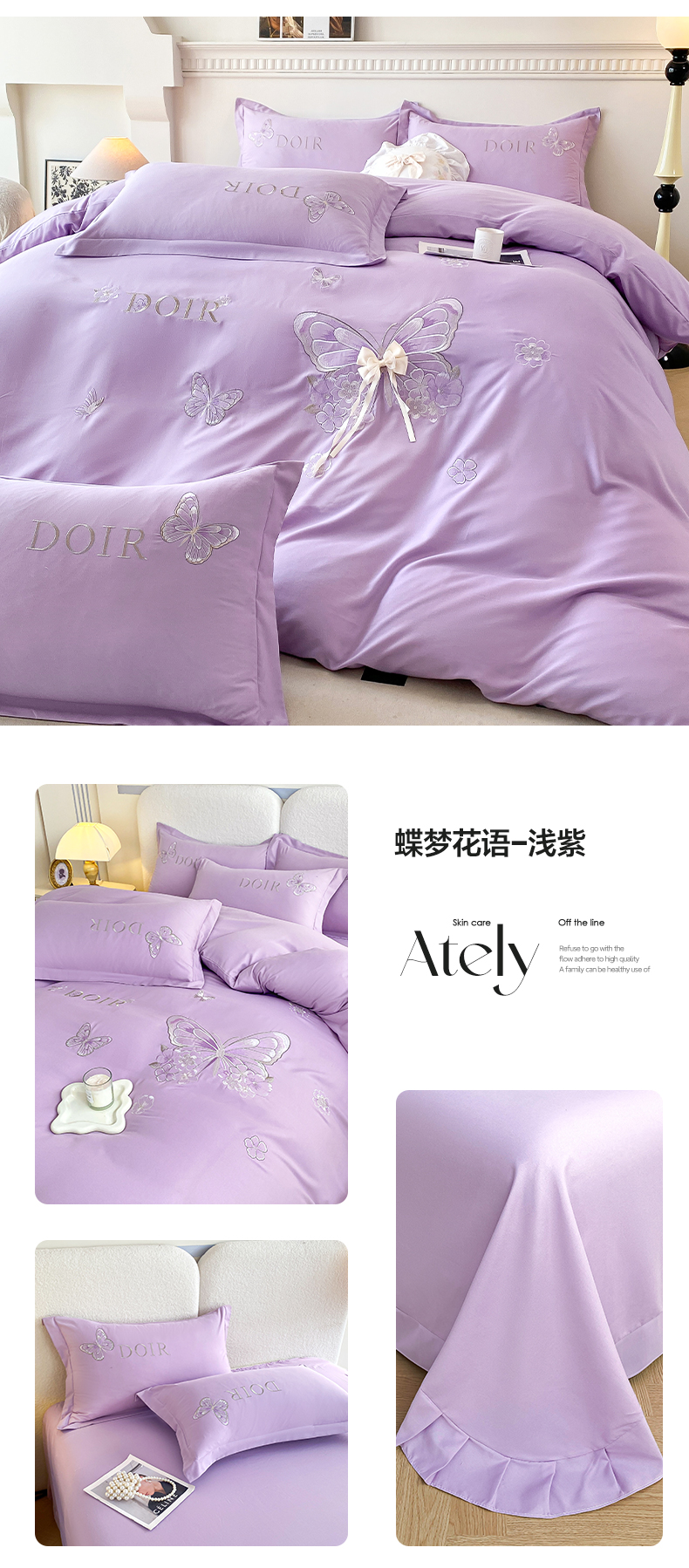 (总)大麦乐田 2025新款糯小棉立体绣花吊边四件套-蝶梦花语,蝶梦花语 粉玉,蝶梦花语 桔色,蝶梦花语 浅兰,蝶梦花语 浅绿,蝶梦花语 浅紫