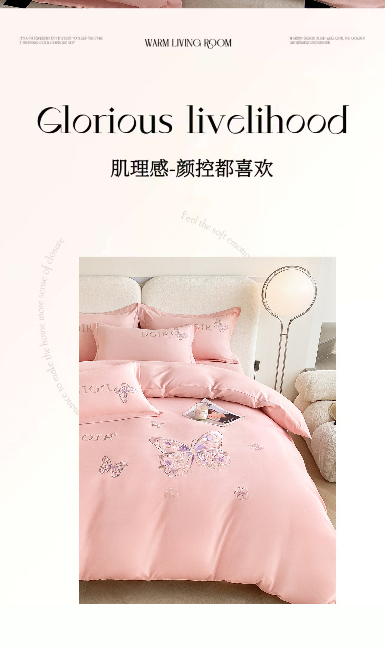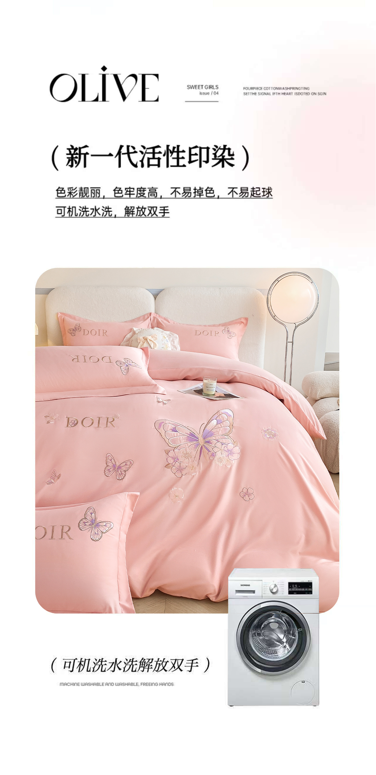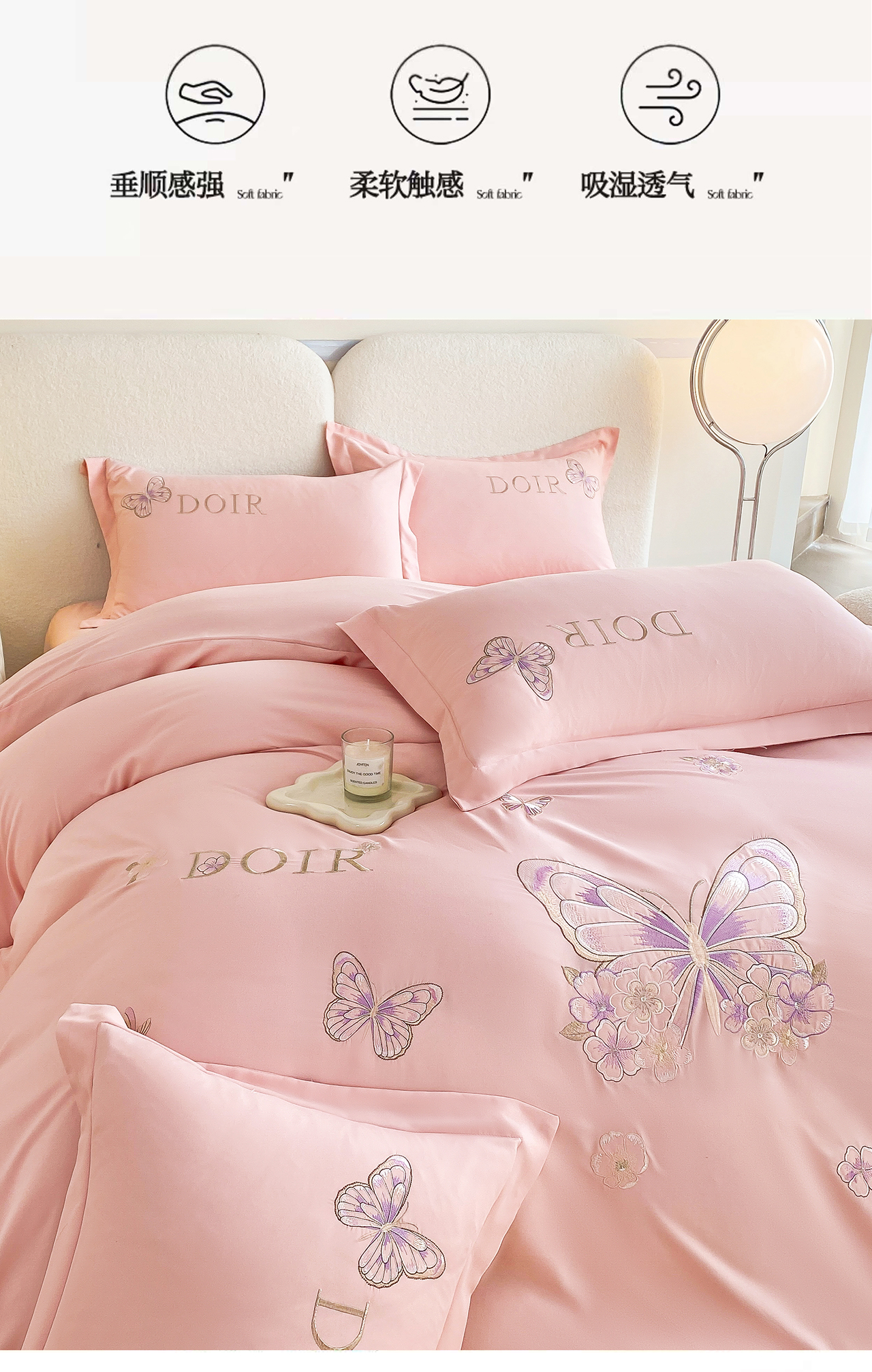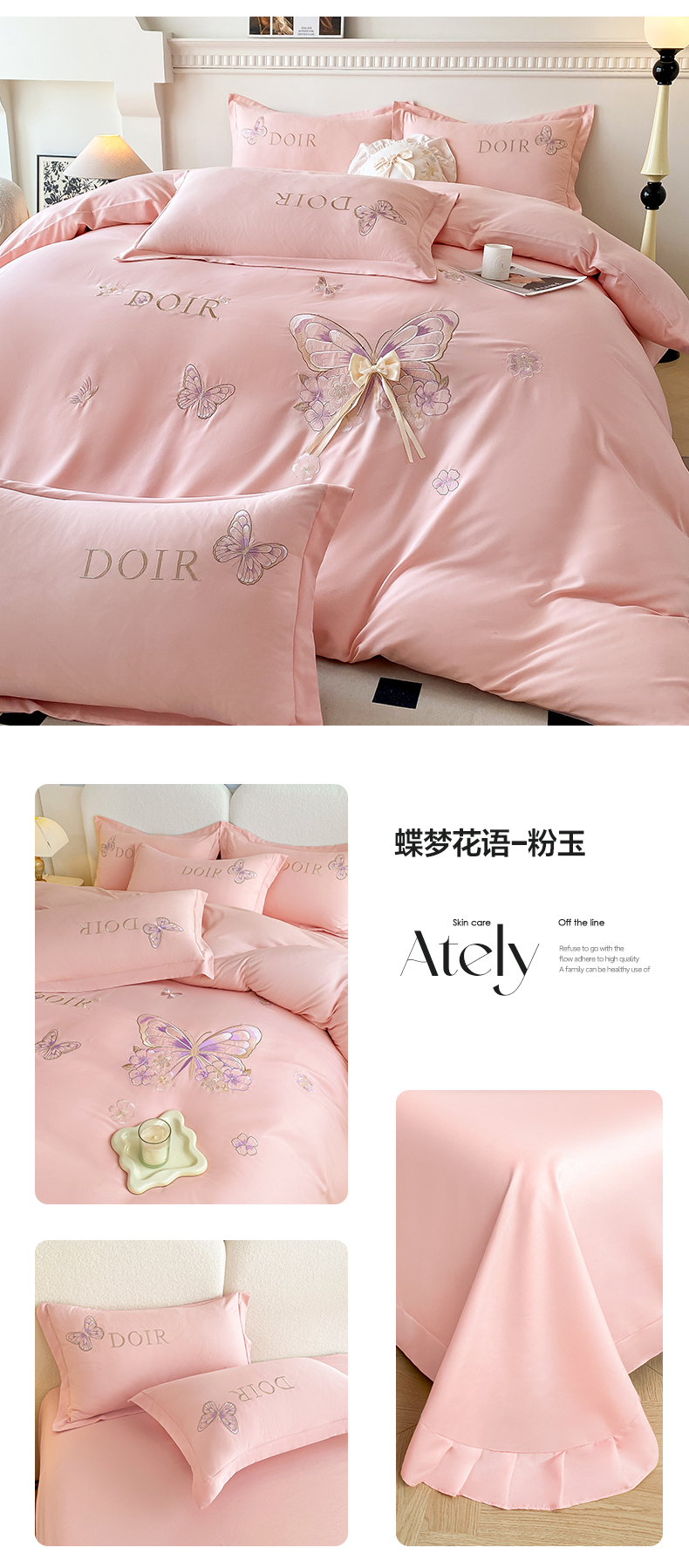 商品名称:大麦乐田 2025新款糯小棉立体绣花吊边四件套-蝶梦花语 蝶梦花语 粉玉