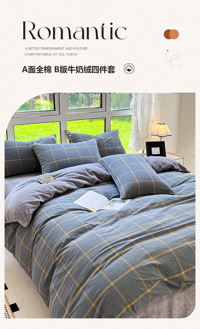 当前位置: 91家纺网 > 商品网购 > 床品套件 > 四件套 > 全棉普通四件套 > 柠萌家居 2025新款无印良品风双拼全棉色织水洗棉加牛奶绒四件套简约全棉拼牛奶绒四件套 提供买家秀 棉+绒-瓦尔灰