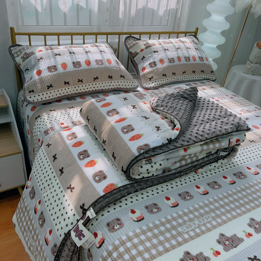 220X240高克重牛奶绒床盖+枕套一对