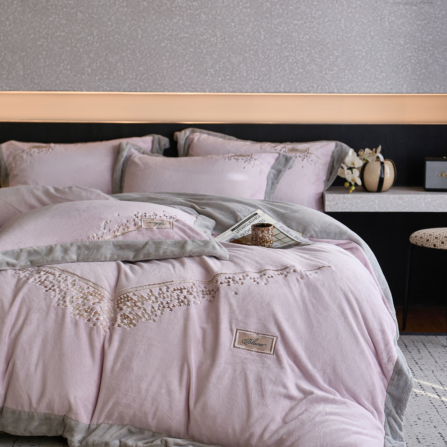 蓝梦 2025新款270g全消光牛奶绒四件套-卡曼缪斯 卡曼缪斯-梦想粉
